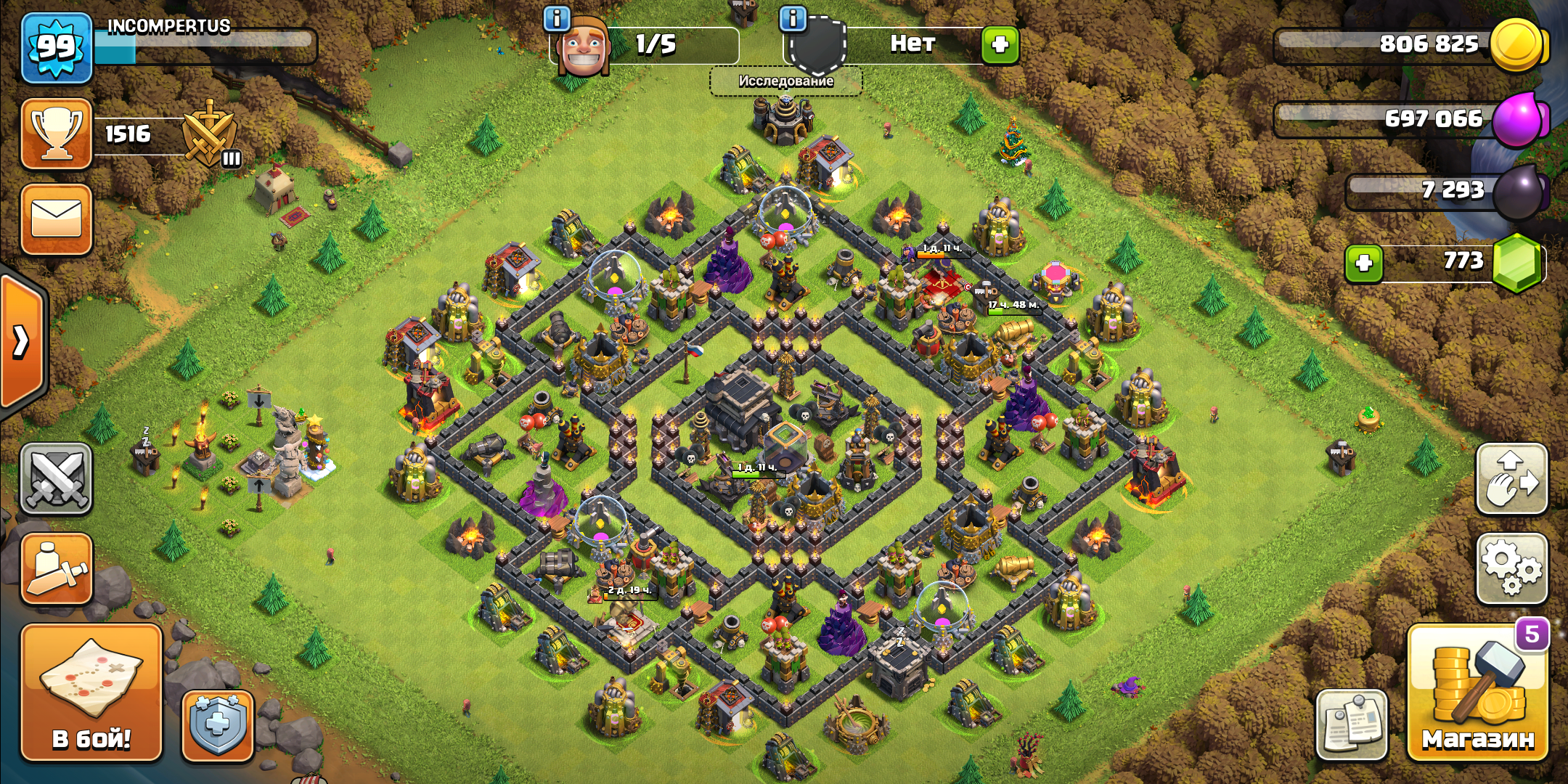 Для тех, кто кок не запускал уже пару лет как или более инфа ниже. Если раньше нужно было долго и муторно качать свою базу, прокачивая все-все-все башни, заборы и бараки, то теперь все немного по-другому работает. Опытные игроки рашат свою базу до тх12 (теперь их 12, да и все в ожидании 13). Во-первых оборона играет не такую большую роль - в высоких лигах тебя все-равно снесут на сотку и заберут весь твой лут, а вот чтобы тебе было фармить легче, разваливать лохов и помогать своим кланмейтам - для этого и стоит рашить. Но делать это нужно постепенно и зная как. По-хорошему нужно идти от атаки - иметь в запасе армию для сноса на 3 звезды (участвовать в кв и лвк - появился турнир для кланов) и армию для фарма. И качать героев. Одного строителя прямо забиндить на прокачке лучницы, а в дальнейшем одного для вардена (на тх11). Прокачав необходимых юнитов, бараки, лагеря можно переходить к следующему тх и так до 12. Занимает это в среднем полгода - год. Многое зависит от того сколько ты вкладываешь времени-денег.