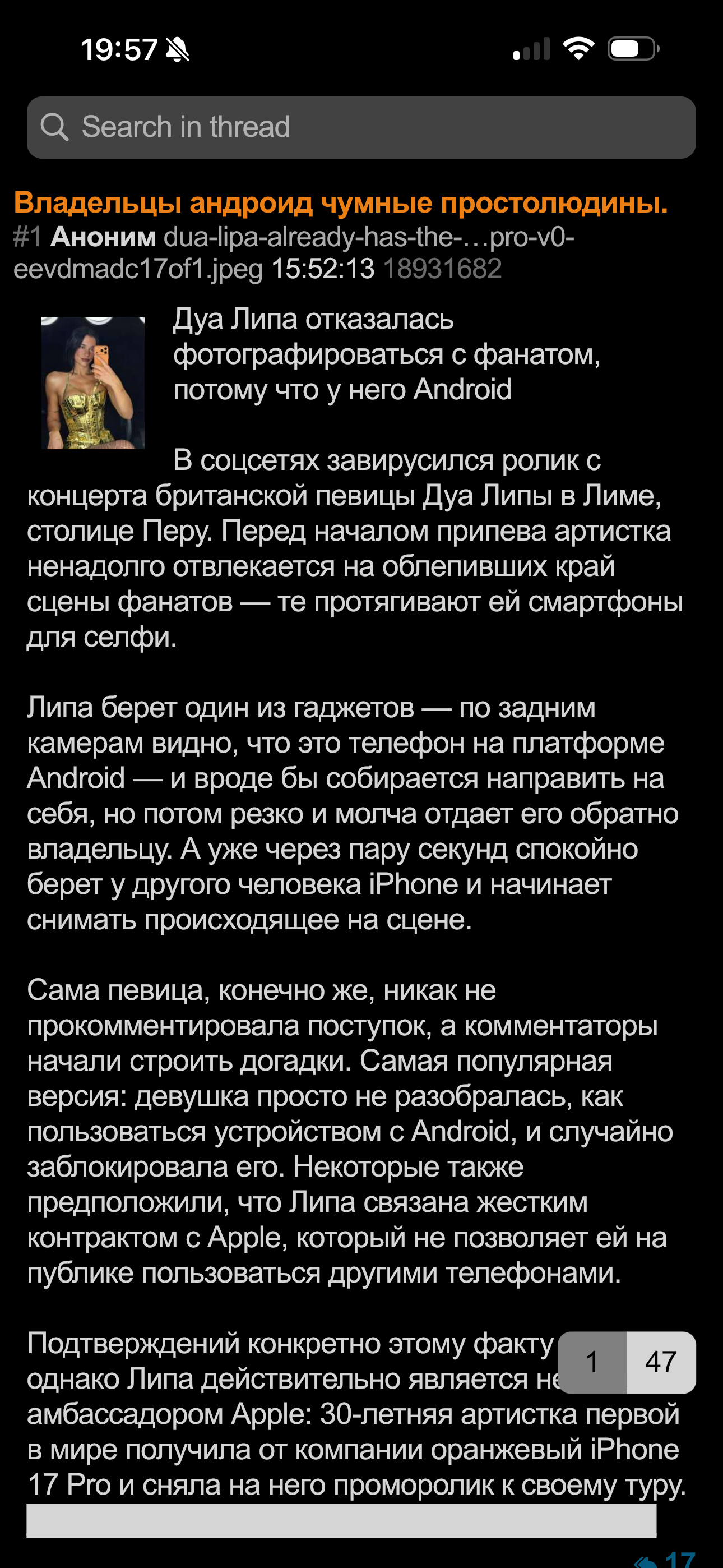 >связана контрактом с эппл Вот это правдоподобнее. Ей Тим Кок завёз айфон 17 до релиза. Так что скорее всего так и есть. Но только непонятно, зачем обсуждать какую-то онлифанщицу. Даже мужик из розеткед поумнее и более достоин обсуждения. Дуа Липа это как вилсаком примерно