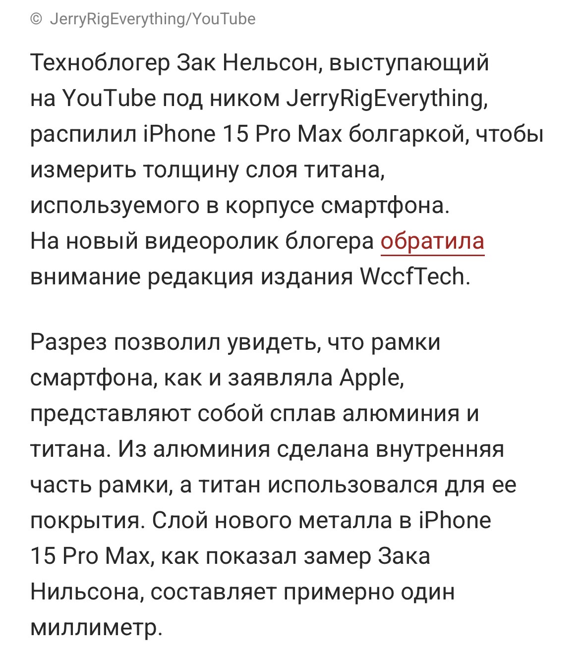 >>2698976 При чём тут краска? Речь о материалах. Были более дорогие, качественные и долговечные, стали менее. Что ты вообще тут доказываешь? 1мм это дохуя для рамки телефона. Или ты ждал бронеслиток размером с кирпич? Бля, да любой дроптест сравнение на ютубе открой, всегда рамка на 17 про будет мяться, рамке на 15-16 про будет похуй. >15 и 16 прошки нихуя не титановые, титановый там только маркетинг Ну я хз, это болезнь какая-то или что. Они буквально говорили: внешняя рамка из титана, внутряк из алюминия. При распиле так и оказалось, при плавке тоже. Где тут обман, в который я "поверил"?
