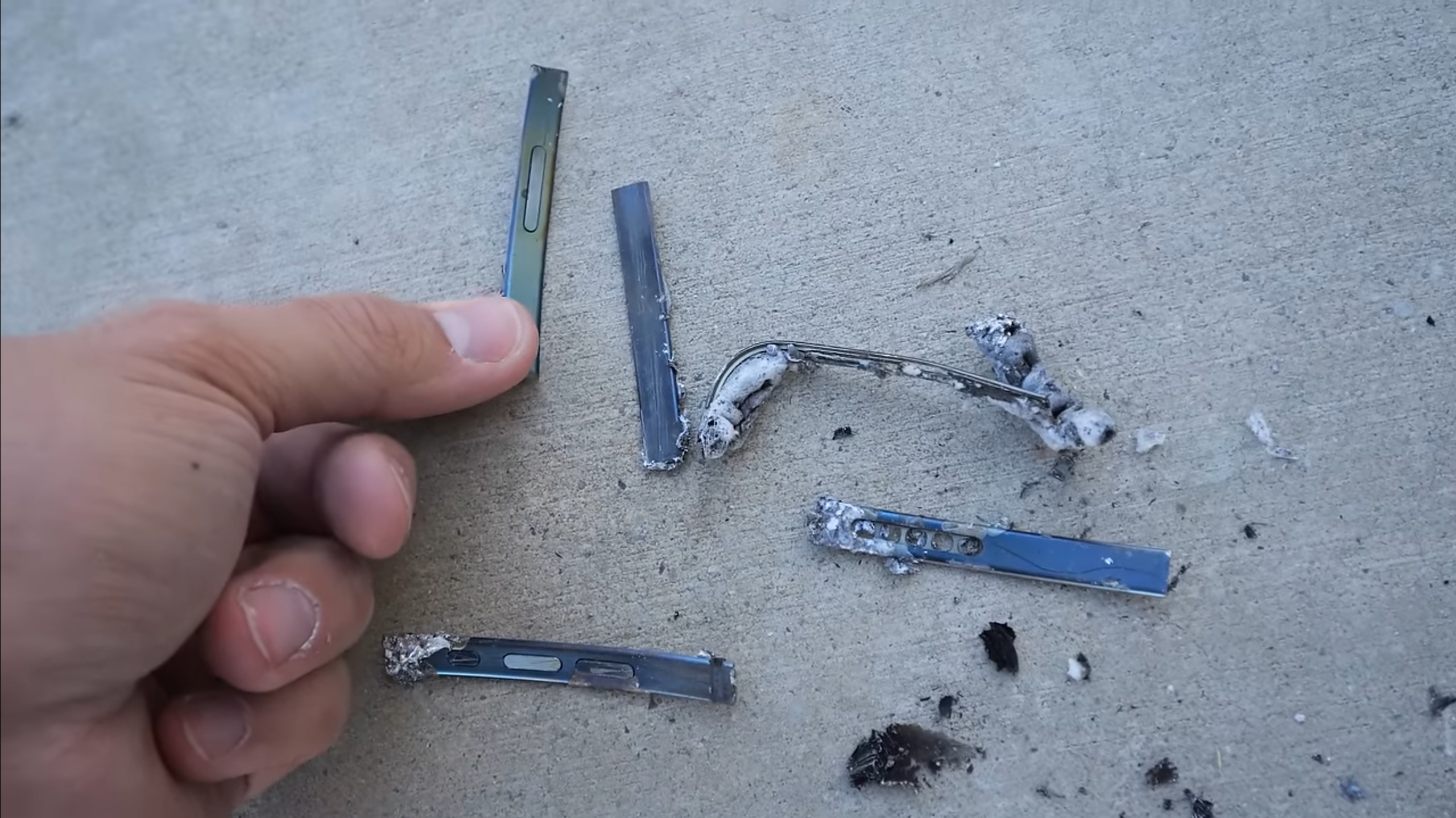 Теперь по тому видосу, что я скинул, от того же лысого чела. Суть в чём: титан не плавится при тех температурах, при которых плавится алюминий. Поэтому то, что ты видишь сейчас на прикреплённой к этому посту пикче - результат плавления - это титан. Тот самый 1мм, из которого сделана внешняя рамка. Похоже на "напыление"?