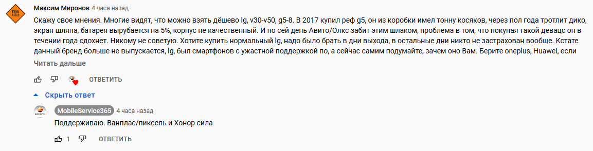 Если не сравнил: - совсем старые модели вроде g4/v10 вообще смысла нет брать кроме как в виде запчастей к старой трубке слить на авито, горячий, прожорливый и самый ебанутый по части кастом ромов (европейскую ревизию на али хуй купишь, только израиль на который даже ром-семёрка не шьётся и корея, адб работает стабильно только под линуксом, после прошивки на стоковый ром не вернуться, инджой). У него всё ещё очень классная камера, он неплохо лежит в руке и офисоблять вроде меня, наклеив Qi-антенну на заднюю крышку может ходить от одного беспроводного зарядника до другого и не вспоминать как быстро он выжирает батарею в игорах, за 5к как будто бы не худший выбор, но если камера не важна в треде ультрабюджетников тебе гораздо интереснее телефон подберут за эту цену. - v20 является народным пердолефоном под который есть даже бубнута. Своих семи тыщ стоит, но камера от г4 недалеко ушла. Он и г5 последние лагманы со съёмным аккумом. По-моему у сяоми есть что-то схожее по железу, но нужно по любому шить не лагающий ром. - v30 хер найдёшь синего или чёрного цвета, но всё ещё можно отыскать европейца и вшить тврп без пердолинга. Загрузчик уже сделан по человечески, проц уже холодный, стоковое девятое ведро вылизано - моё почтение, камера приличная и сильно получше чем в г4/v20 и есть мыльноватая широкоуголка, стоит 835 снап которого хватит вообще на всё. Стоит 10-11к, чего ты ждёшь, беги клянчить купоны на али. - v40 щеголяет на удивление мелкой батареей, медленным усб 2.0 портом и с этого момента опять начинаются палки в колёса по поводу ромов. Девятое ведро имеет уязвимость через которую ставится тврп, из альтернативных ромов линейка и хавок, но есть сток-десятка. К камерам добавился двукратный телевик, которым по-моему удобнее для макро пользоваться чем для телефото. Цена вопроса 13-14к. Последняя модель лыж к которой есть мои ненаглядные поликарбонатные фростед-шилд чехлы от Nillkin. - v50 практически полностью повторяет v40, только за 18к ты получаешь шустрее проц, увеличенную батарею, усб 3.0 (как будто им будет кто-то пользоваться) и есть цацка в виде съёмного чехла со вторым экраном, я им попользовался полчаса и вспомнил что я в игры не играю, а если бы играл, заставил бы соседского васяна напечатать клипсу для дуалшока. Хотя штука весёлая, можно четыре чат-приложения глядеть одновременно и щитпостить в многопотоке, но телефон с ней по размерам и весу напоминает Oukitel K10000. Очень долго ломали загрузчик, эксплоит для временного рута есть только на недопатченной версии стока-десятки (последний сток-десятка имеет более свежее ядро без уязвимости), но этот временный рут позволяет вшить тврп, а оттуда уже добавить нормальный магиск. Процесс заморочный, но ты справишься. Главная проблема в том что десятка релизнулась очень всратой и юзабельная только в последней версии без эксплоита, а линейка под него появилась только на днях, дейли-драйвером я в итоге оставил вылизанное девятое ведро которое отчистил через адб. Про камеру я долго и подробно высирался в соседнем фототреде, но в кратце она почти как на v40, только более мощный 855 снап умеет не лагать в геншине хдр10, 4к@60фпс и стоковое приложение возвращается к прежнему удобству по которому я скучал ещё на г4, обновившись с шестёрки на семёрку. Не скажу чтобы он был сильно приятнее чем мой прошлый v30, я прям скучаю как на нём всё просто моди