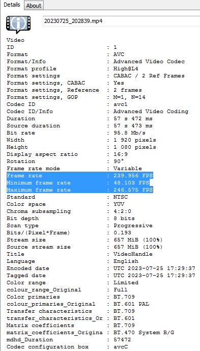 Поясните за съёмку 240 фпс на V50. Пикрилейтед. Какого хуя фреймрейт переменный? В настройках про это нигде ничего не сказано. Видео получается как бы с "лагами", 48-240 фпс скачет. Использую стандартную камеру (через "ручной режим видео"). Как снимать с постоянными 240 фпс?