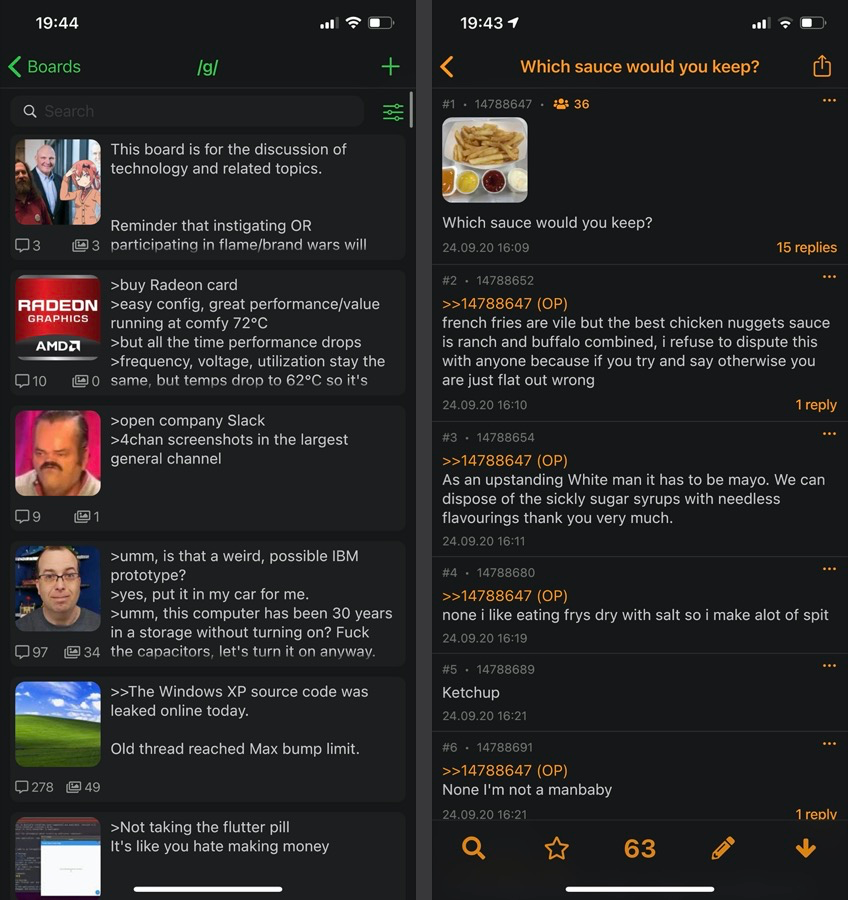 На айчане есть следующие плюсы? - Расширенный поиск по треду - Полоса прокрутки с индикацией постов и ответов - Удобная история - Скрытие свайпом - Автоудаление имён и методанных файлов при их отправке