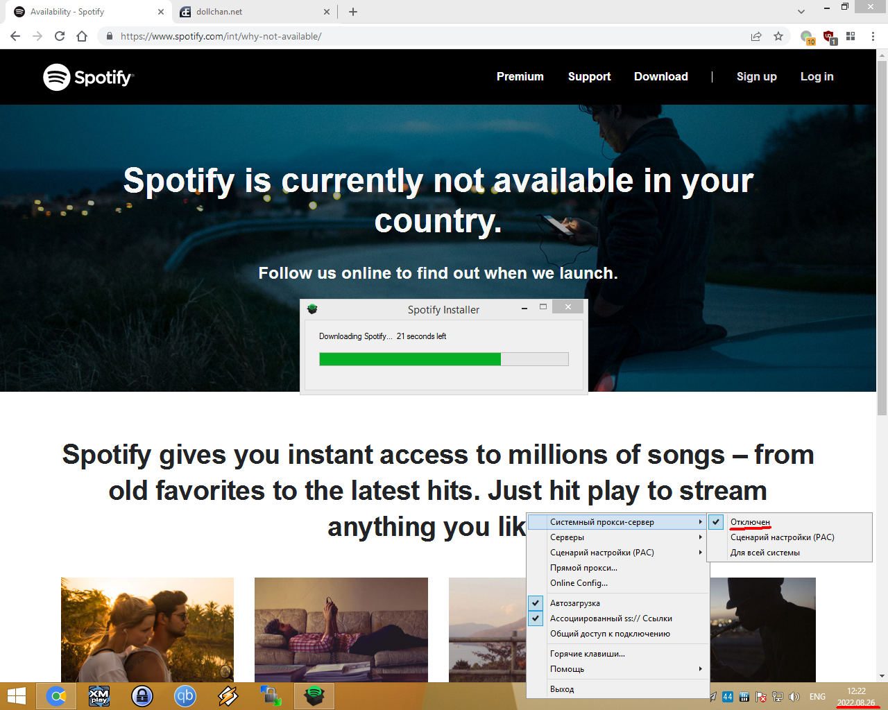 Этот ебучий сайт спотифая ни с одного ВПНа, которым я пользуюсь, не открывается Какой сервис использовать, чтобы не вылазило это ебаное окно с why not available?