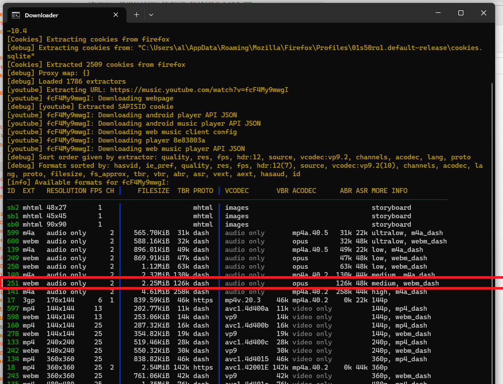лось - свой, mp3 делал из лося с качеством покруче insane презета, opus - то, что стримится с ютуба. забирал yt-dlp с форматом bestaudio без конвертации ffmpeg'ом
