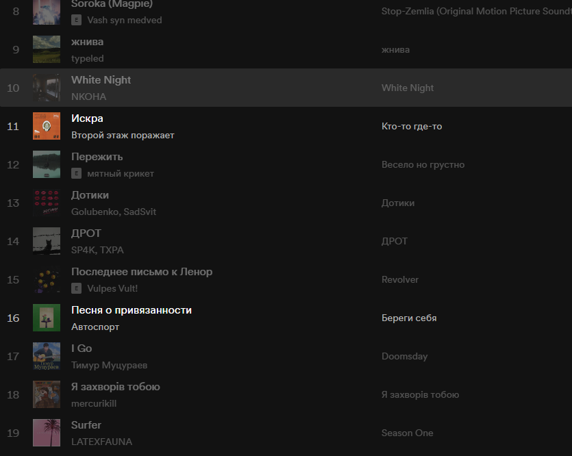 Споти заболел. Уже которую неделю подсовывает мне хохлов. У меня нет предубеждений на их счет, есть прекрасный исполнитель - луна, которая мне нравится. Но видимо, после этого, он решил что меня интересует только их музыка. Это как с репом, один раз послушаешь - не отмоешься, но ведь считалось, что споти умнее остальных сервисов, не? Пиздос.