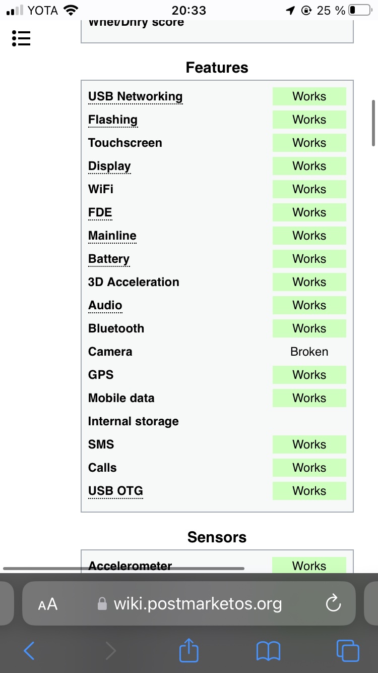Проект находится на раннем этапе развития. Судя по опубликованным разработчиками фотографиям, загрузить операционную систему до конца у них пока не выходит из-за невозможности смонтировать файловые системы. Также не удалось заставить функционировать USB-интерфейс, экранный сенсор, модуль Bluetooth. Впрочем, проблему с USB разработчики рассчитывают решить оперативно, а по сенсору наработок пока нет.
