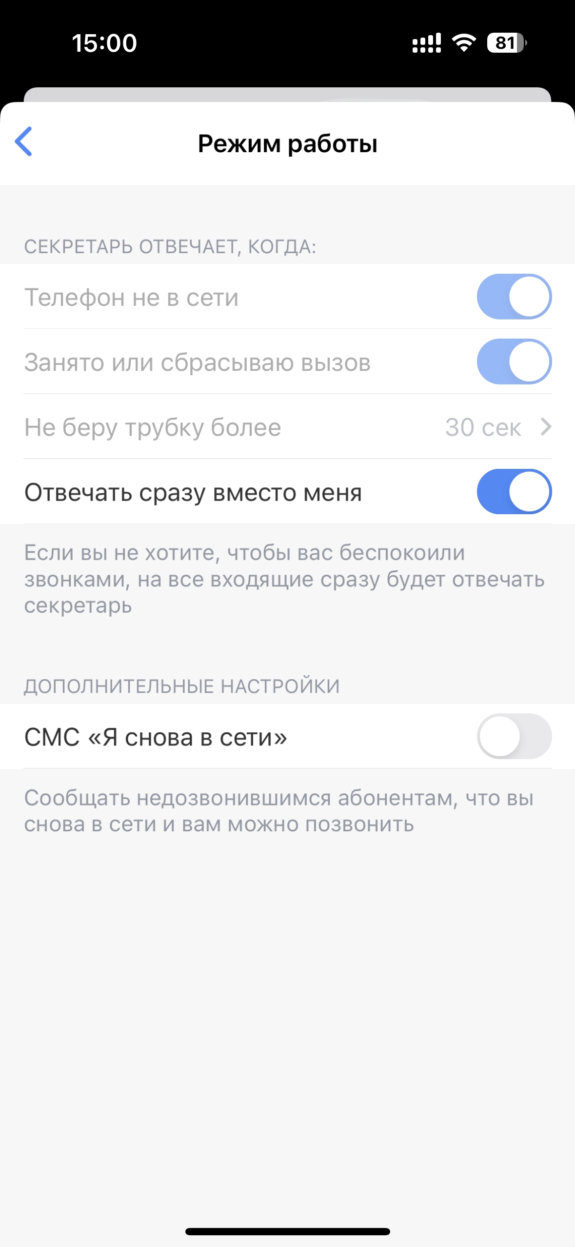 Перманентно стоит режим «не беспокоить» на айфон. Даже в рабочие часы. Периодически проверяю телефон и сам решаю кому перезванивать. Остальные слышат в трубку «абонент сейчас занят» и думают что я разговариваю по телефону