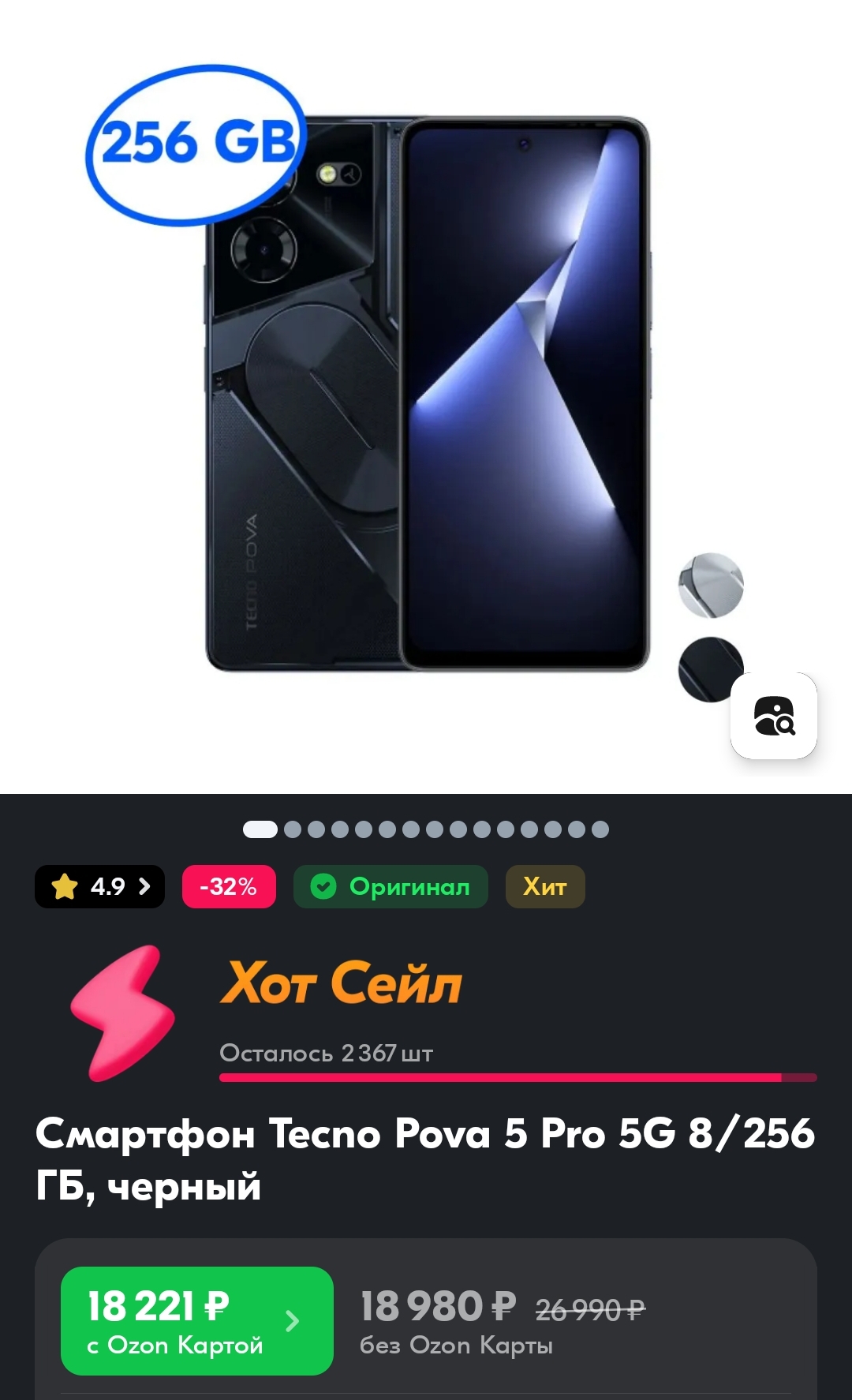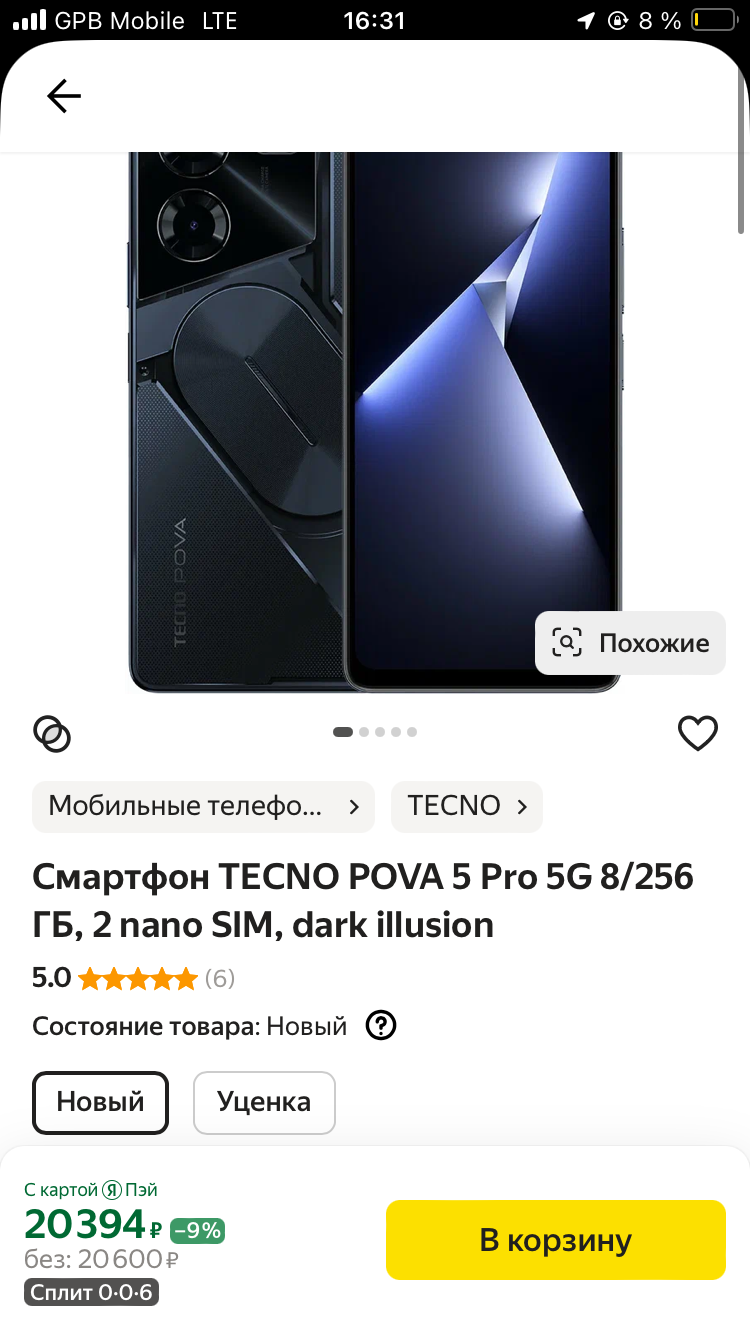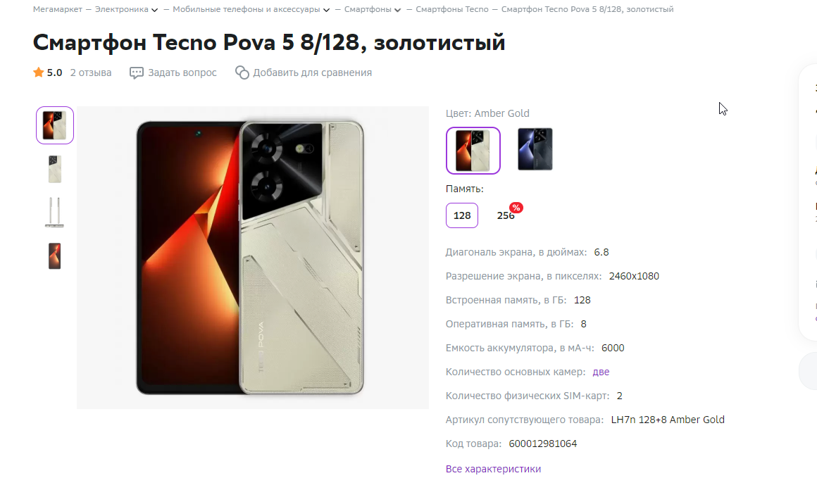 любителе tecno такая инфа для вас короче купил тут пова 5 по рекомндации на вайлдбериз, оказывается есть подделки на этот телефон, дешевле средней цены по рынку на 3-4 тысячи, отличие в характеристиках и незначительные различия во внешке телефона, так же отличается бедной комлпектацией нету чехла, нет защитного стекла и неоригинальная треугольная коробка, а обычная