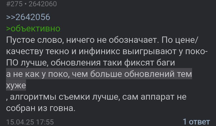 HIOS (у меня 14.5 на данный момент) самая конченая хуйня, которую я брал в руки. Кривое говно, забитой всякой китайской блоатварью, которая вшита в системные фраймворки и как бы не старался - такое не выпилишь, askai, еlla, smart translate и прочее дерьмо, которое серит тебе везде, начиная от контекстного меню, и которое даже через адб не снесешь в полной мере, не сломав часть основного функционала телефона. Кривой лаунчер с тотальным дефицитом настроек, при смене с которого на любой другой отваливается часть функций (я уже не говорю о том, что будет, если удалить его к хуям). Сам производитель водит шершавым и никакие исходники не выкладывает в открытый доступ, банально - хочешь прошивку, пиздуй в сервисцентр и не ебет, даже скаттер файл хуй достанешь, чтобы дамп сделать, пусть он и четверть ссд забьет. Смешанные чувства у меня по поводу этого телефона, с одной стороны, дешевый даже в сравнении с другими китайцами, и при этом имеет неплохое железо с приемлемым уровнем сборки, по крайней мере в соотношении цены/качества, типа g100 и 8гб озу за чуть больше чем 10к, нихуя себе, и оно вроде не с запредельным количеством брака. С другой, это все нивелируется просто ублюдской прошивкой, с которой нихуя не сделаешь, от которой не убежишь и которая даже банальный кастомный будильник (без аларми не просыпаюсь) не может поставить, чтобы он просто зазвонил утром, потому что ебанутые политики энергосбережения, не контрящиеся ничем (обходной путь, поставить стандартный будильник примерно на 30 минут позднее, тогда зазвонит). Костыли, полумеры, сырость, баги, своенравность, катастрофичное количество телеметрии - это все будет вас преследовать, если свяжетесь с телефонами данной марки. Дадно, я его еще не дорого взял и срака не так горит, да и за выделенный бюджет я бы вряд ли взял что-то с таким железом. А теперь представьте ебала додиков, которые взяли себе устройства высшего эшелона среднего класса и флагманы, которые все, естественно, идут на этой прекрасной прошивке?