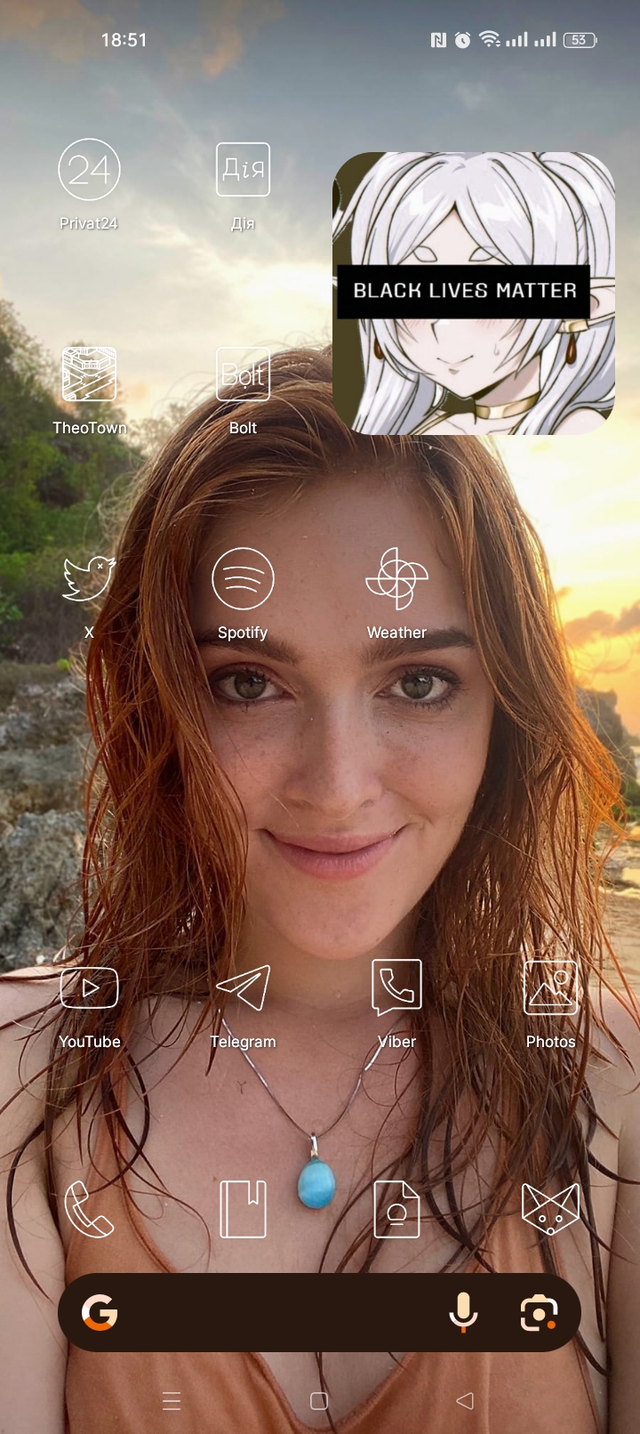 >>2615805 Я другого пути не нашел в этой ситуации. Опять же, впервые что-то подобное делаю. Использовался Nova Laucnher с оптимальными настройками, пак иконок из разных версий ОС, приложение KWGT для создания кастомного виджета Google (это пнг-картинка, но на нее можно нажать и откроется сайт гугла), виджет погоды из Sense Flip.