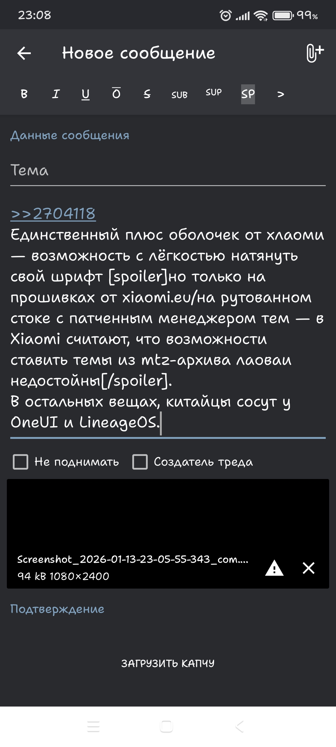 >>2704118 Единственный плюс оболочек от хлаоми — возможность с лёгкостью натянуть свой шрифт но только на прошивках от xiaomi.eu/на рутованном стоке с патченным менеджером тем — в Xiaomi считают, что возможности ставить темы из mtz-архива лаоваи недостойны. В остальных вещах, китайцы сосут у OneUI и LineageOS.