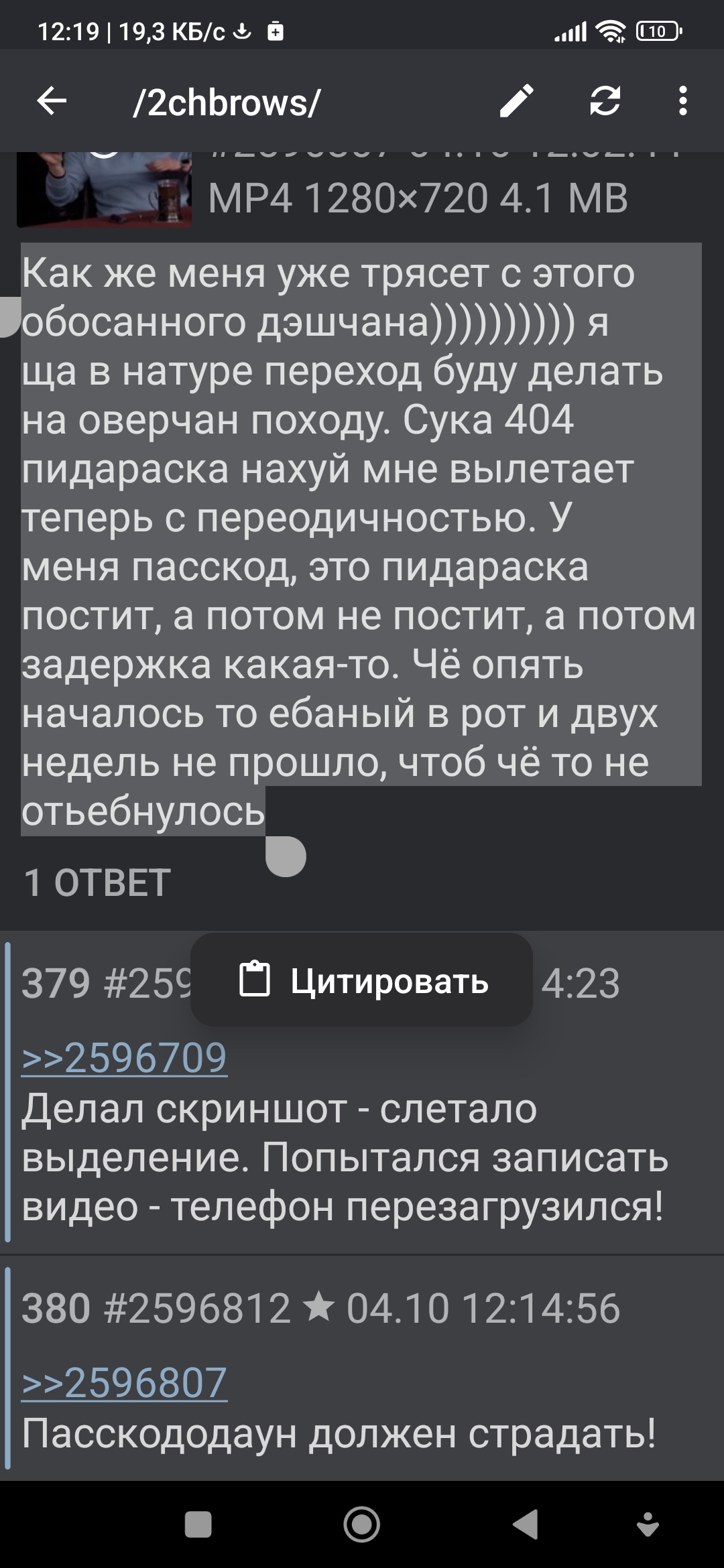 >>2592220 И ещё один вопросик, раньше при выделении текста была менюшка самой даши и там можно было выбрать цитировать и прочая хуйня. Теперь выскакивает меню хуй пойми клавиатуры или системы не важно и там можно только копировать и вставить. Как меню даши то вызывать?