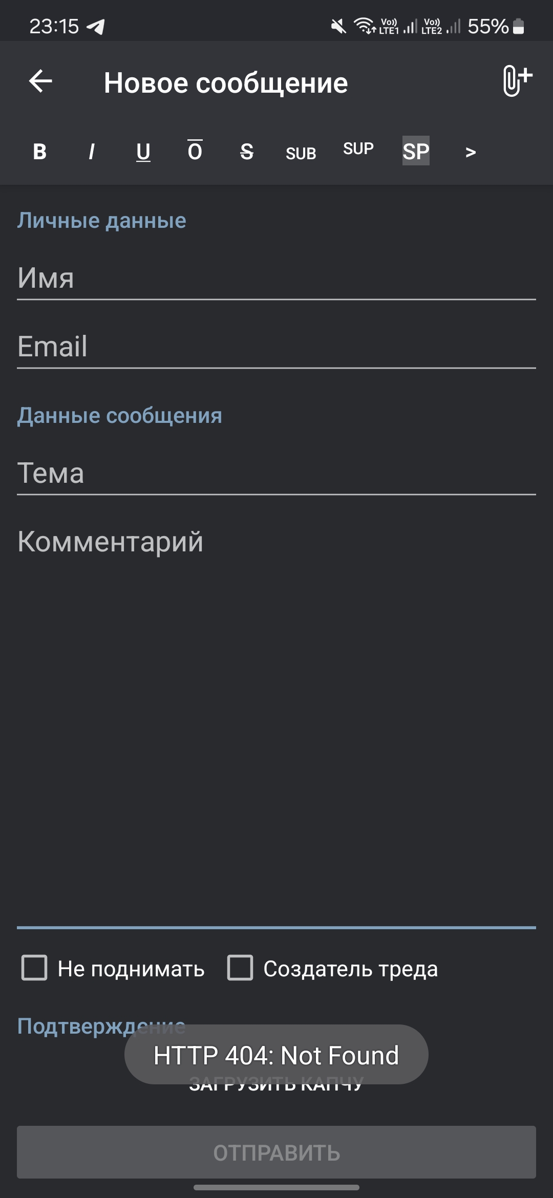 Чёт опять на старом андрюше выдаёт "Недостоверный сертификат". Частично это лечится снятием галки "Защищённое соединение", но тогда не работает капча, выдавая "HTTP 404: not found"
