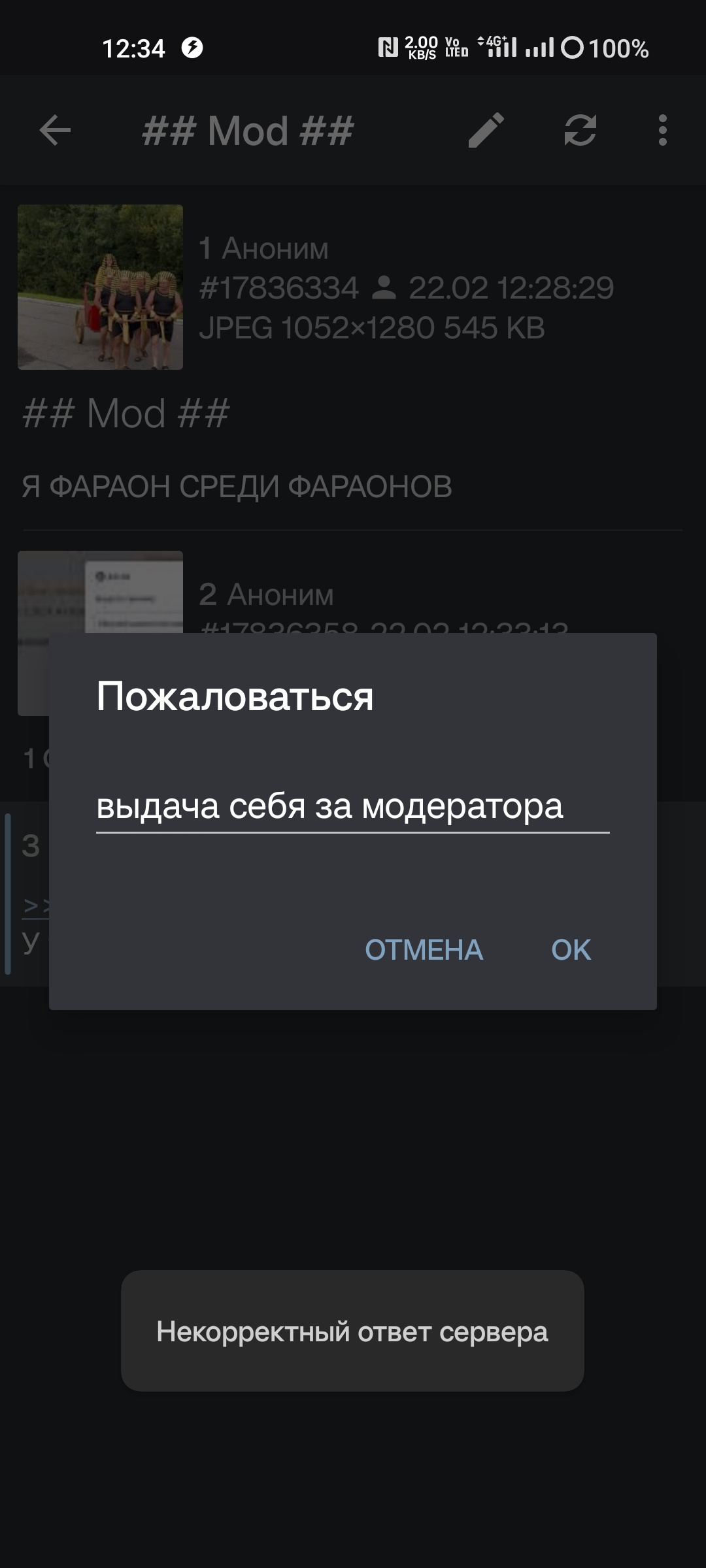 >>2612724 Один хуй потом через 3-5 постов будет вылезать "некорректный ответ сервера". Временно фиксится сменой айпи. Есть три способа: 1. Переход с мобильного инета на вайфай 2. Переход с вайфая на мобильный интернет 3. Включение или отключение впн