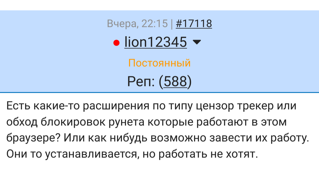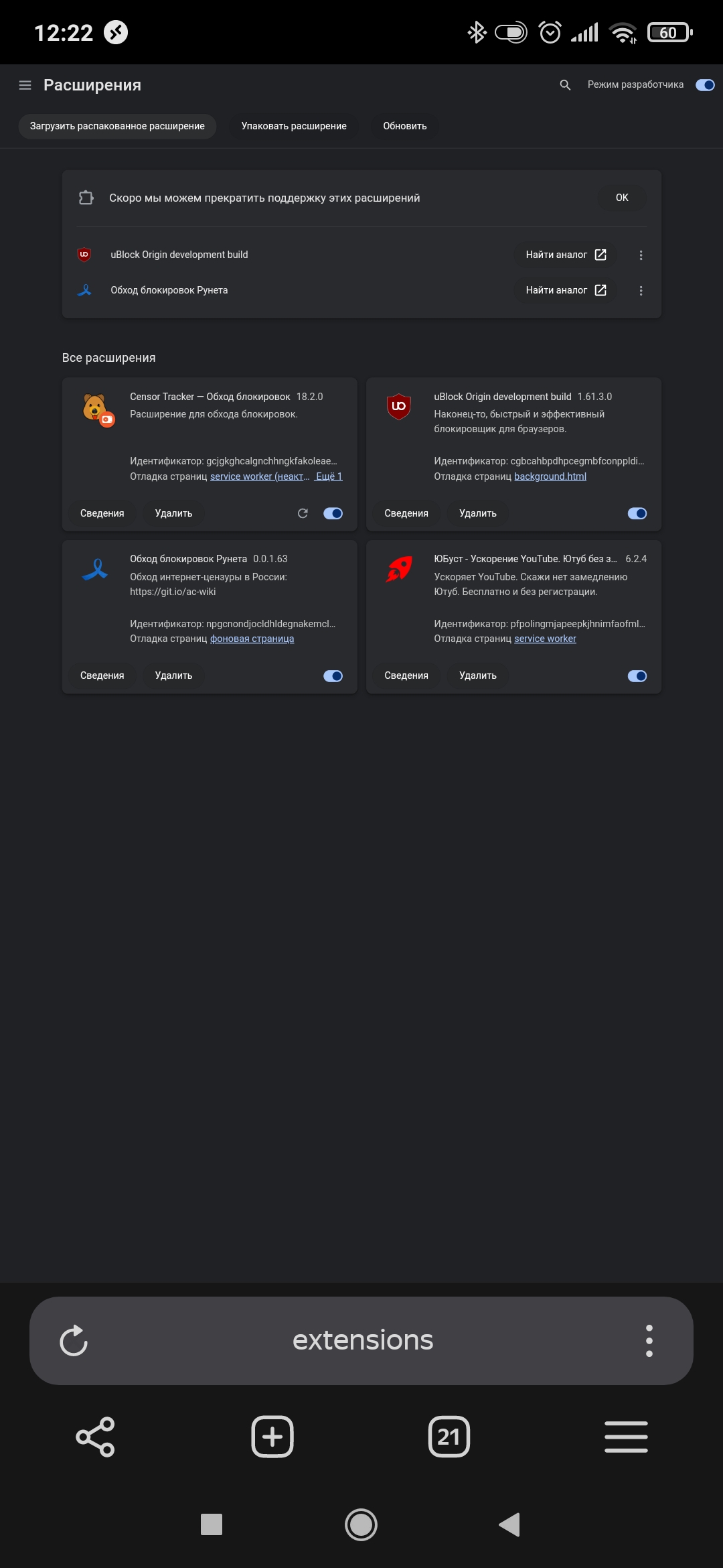 >>2611345 Яндекс браузер. 1. Поддерживает расширения. Я на него юбуст поставил и теперь ютуб смотрю без byedpi. Охуенно. Еще надо ставить не простой ублок, а ublock origin development build и добавлять пару кастомных фильтров и рекламу режет вообще всю. Ну и прокси расширения, VPN, все работает идеально. Еще PDF viewer отлично открывает документы. 2. Недавно браузер начал играть ютуб в фоне полноценно, даже с выключенным экраном, спасибо разработчикам. 3. Переводит видео. 4. Переводит текст на картинках Короче пиздец, на данный момент просто нет конкурентов этому браузеру.