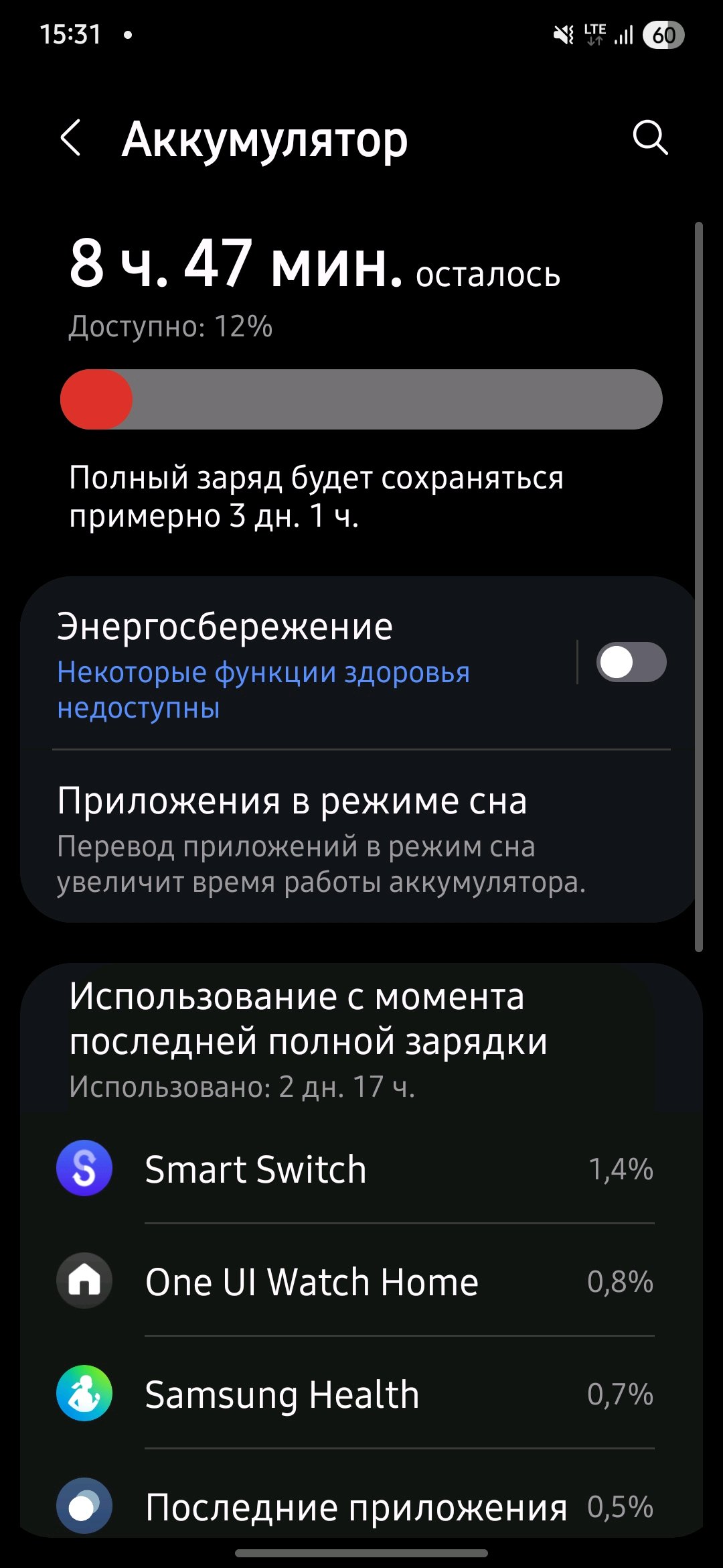 >>2669195 Я вот как раз дожимаю последние 13% из них и ставлю на полную зарядку. Точно могу сказать, что 3 полных световых дня и две ночи держат с запасом. Надеюсь, да, аккумулятор адаптируется и будет 4 дня. Для часов с WearOS это прям хорошо. 6 Classic 47 mm как ни крути у меня живут двое суток, тоже без датчиков. К концу вторых суток остается 10-17%.