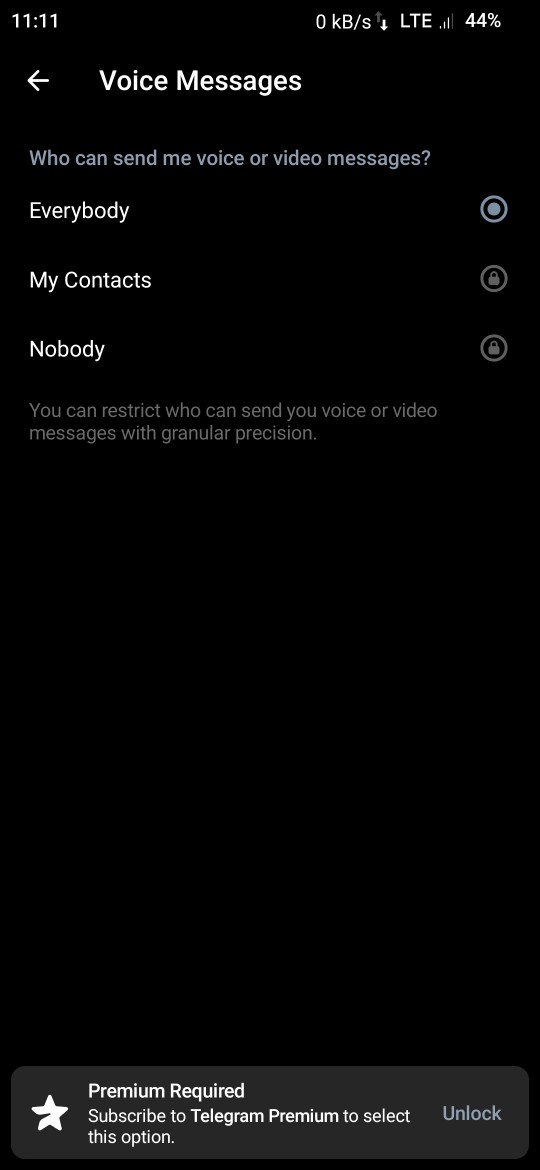 Ещё из интересного там есть чёрный список каналов, ботов и даже пользователей. При попытке попасть туда выскакивает предупреждение «Материалы недоступны» или «Этот %1$s недоступен в связи \n с нарушениями правил платформы». Правда, таких строчек нет официальном клиенте Telegram.