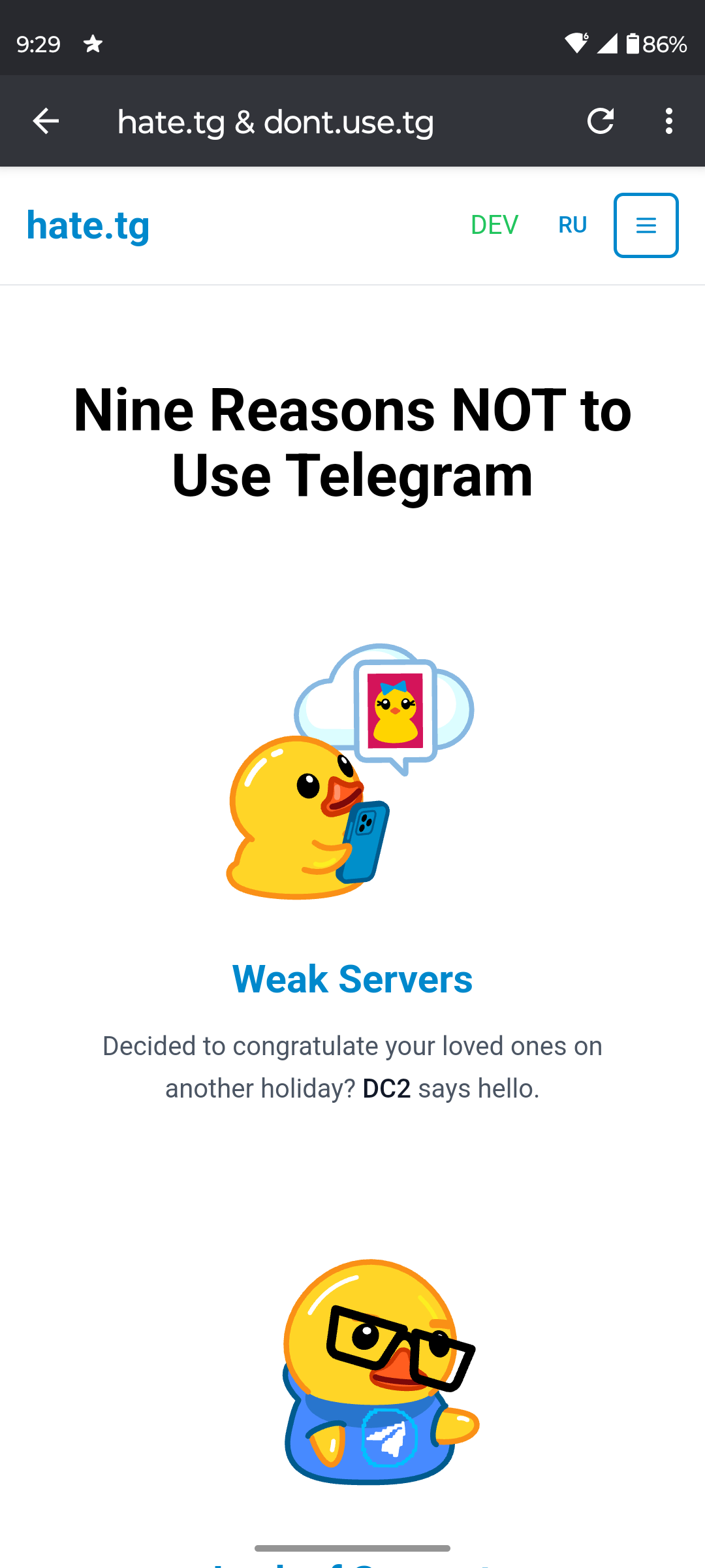Тем более, автор прав во всём, когда случается какая-то крупная катастрофа, сервера DC2 - ложатся из-за наплыва людей (Дуров видимо не слышал, про такие вещи, как улучшение серверов, но зато как настоящий бизнесмен, он зато знает как выдоить побольше лавэ из народа), потому что, они хотят узнать, что происходит, прочитать последнюю информацию, и так далее, но вместо последней информации, сервера просто лежат, и людям приходится либо ждать когда придут в норму сервера, либо же искать новости не в мессенджере, а где-то в другом месте. Про частое падение серверов, я вообще постараюсь умолчать.