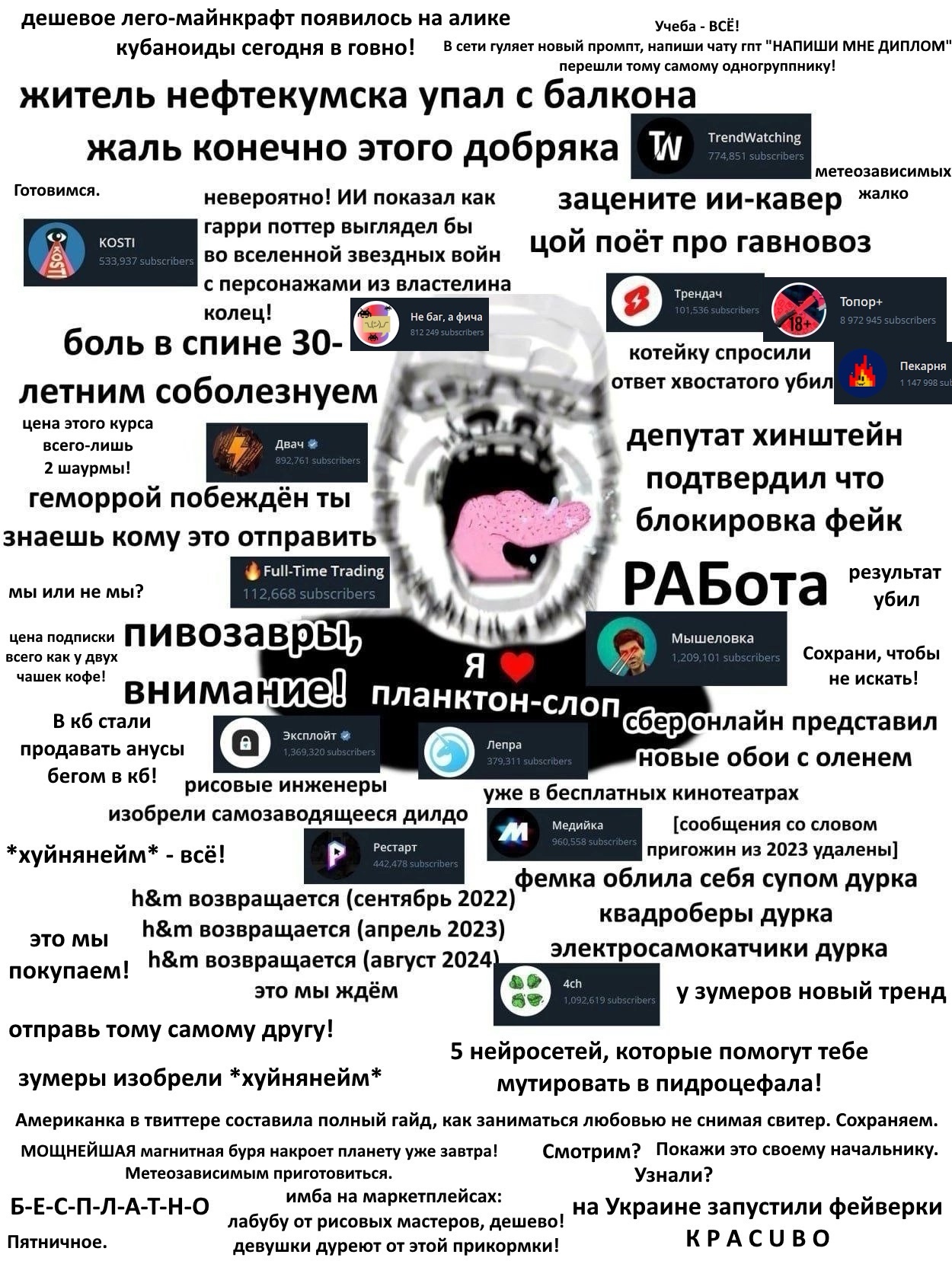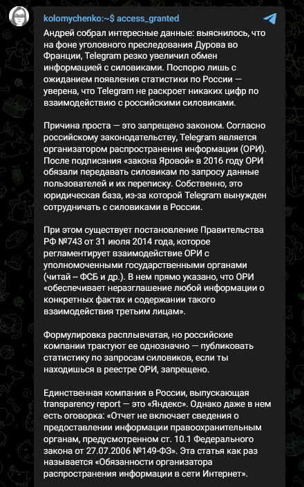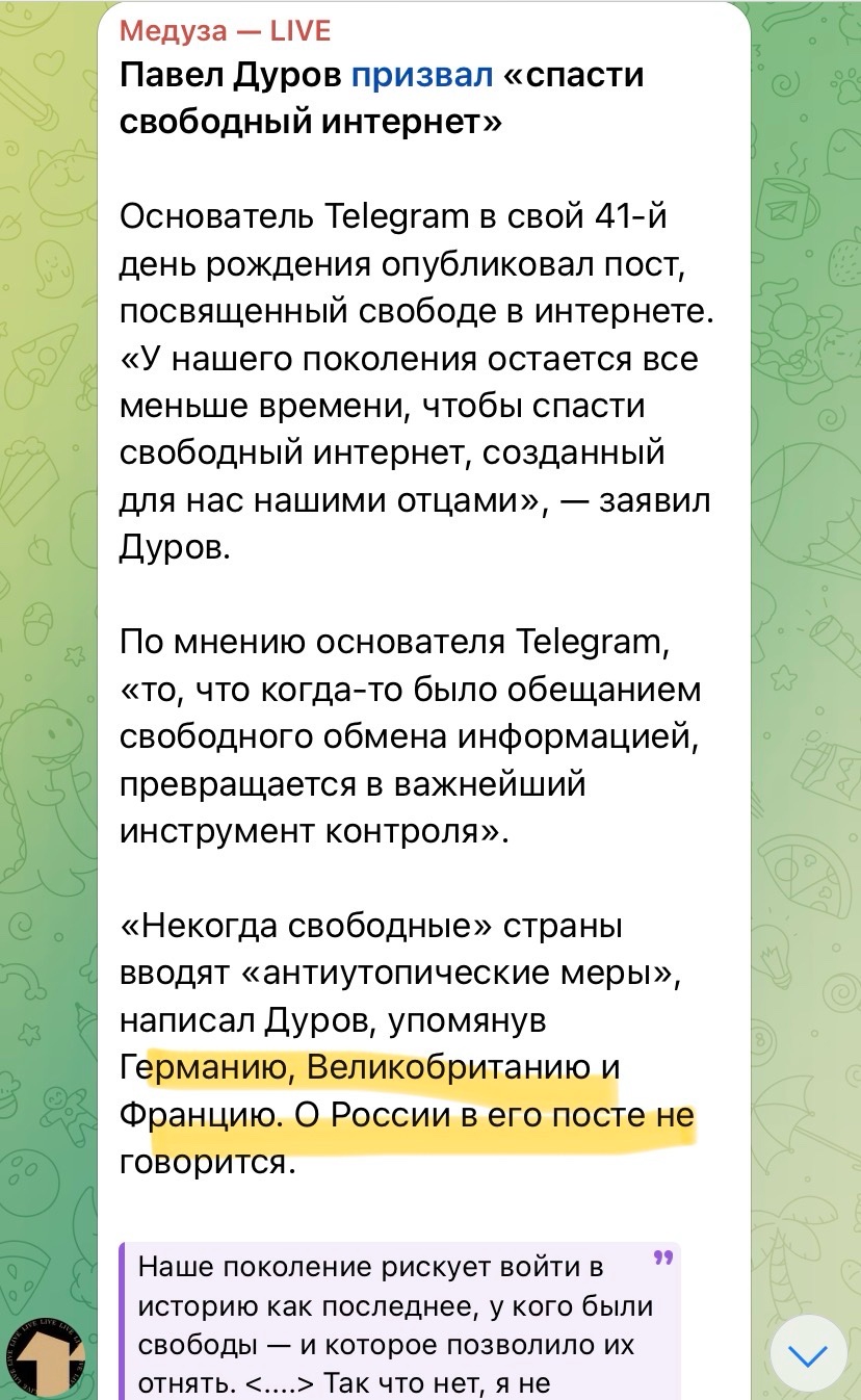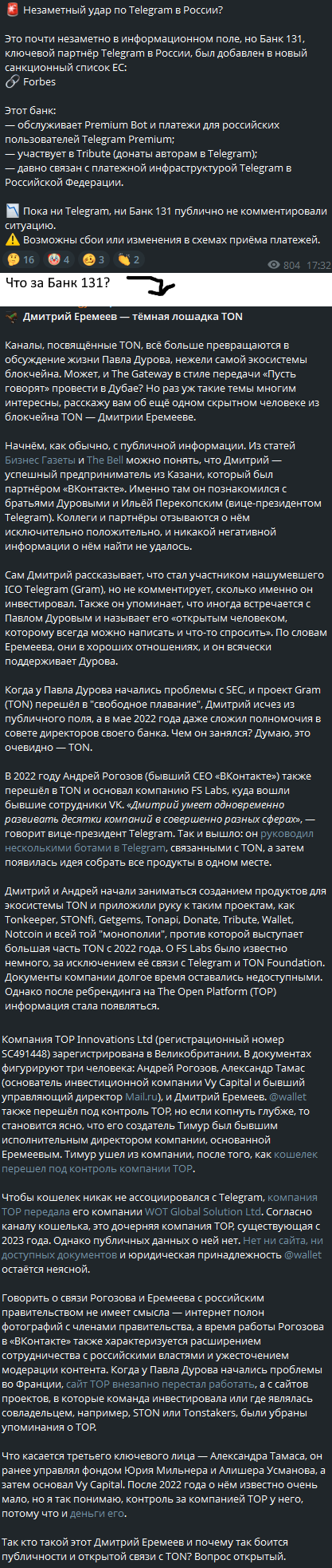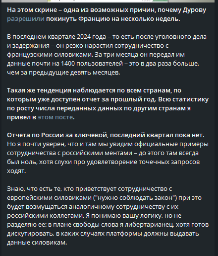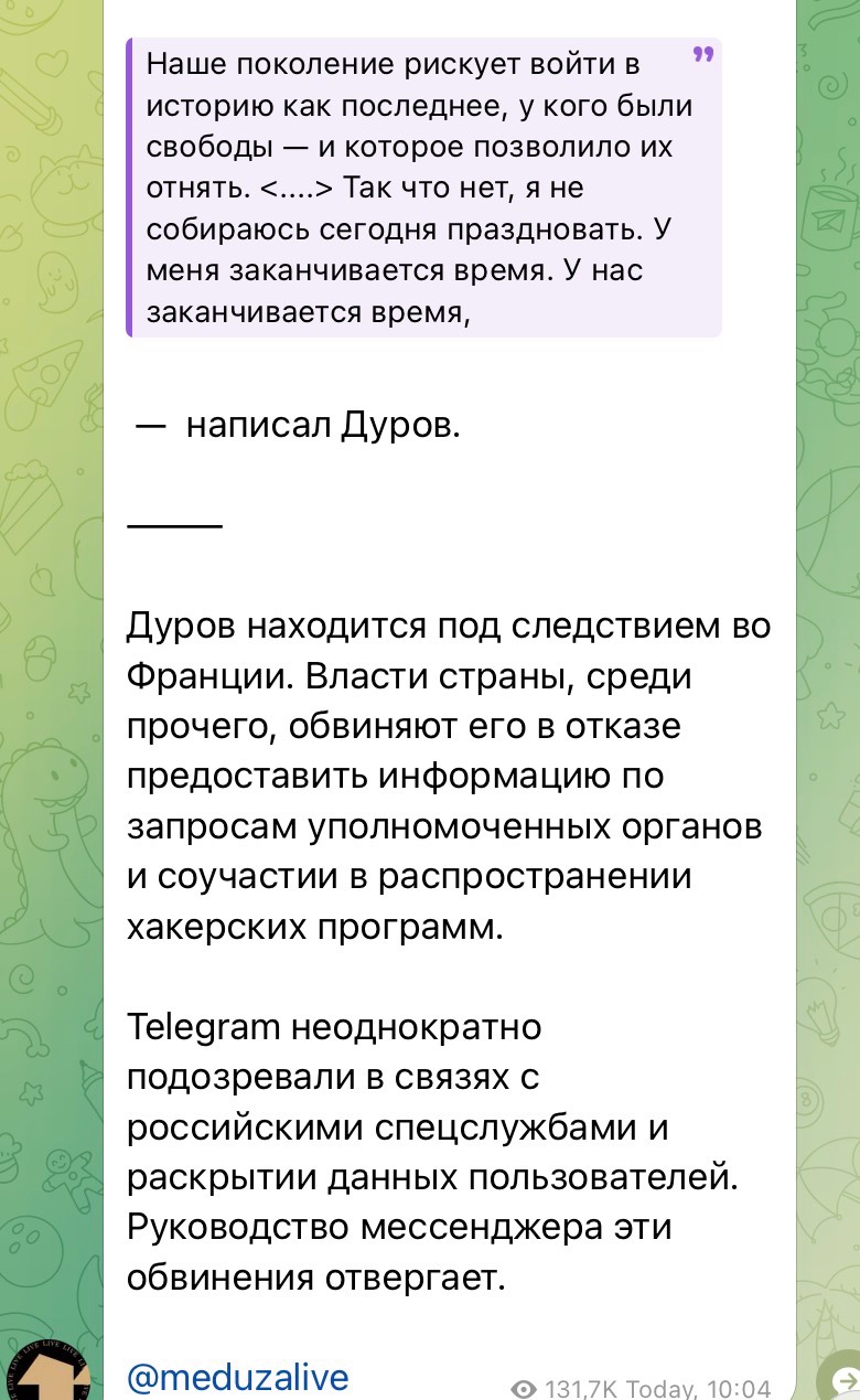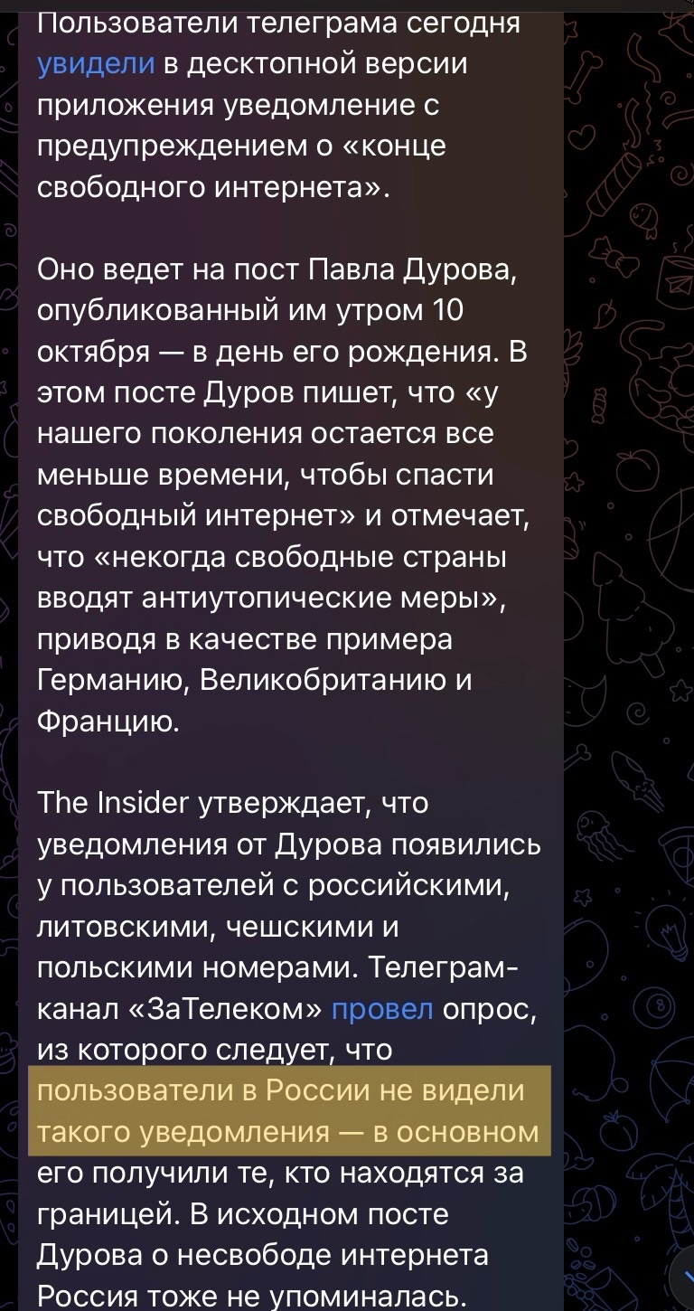 П.С. когда этого любителя Франции задержали и стали пропадать каналы из поиска, вкладка людей рядом, появились региональные ограничения и тд, возникла мысль, что надо бы сохранить инфу и оставить тг только для просмотра каналов знакомых, плюс выписать имена их акков на всякий. Но я ничего не сделал, ибо думал, что ТГ чем-то отличается от метапомойки, за что и поплатился. Можете закидать ссаными тряпками, согласен, но надеюсь, главное не совершайте моих ошибок.