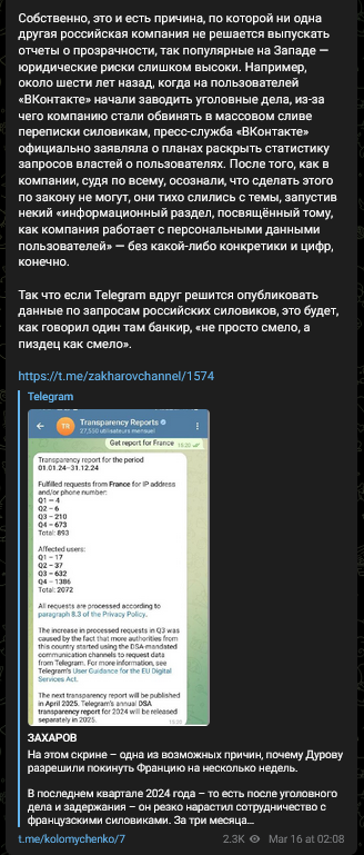 >>2638441 Лучше почитай, в двух словах не перескажешь, чтиво интересное. Тем более мне лень пересказывать, что там написано. >>2638443 Я вообще стараюсь не ставить реакции, и что либо писать в пабликах, по этой же причине. Мониторинговых ботов - дохуище, да и пруфов, что Telegram это кремлёвская помойка тоже было дохуя, даже в тред было скинуто, емнип.