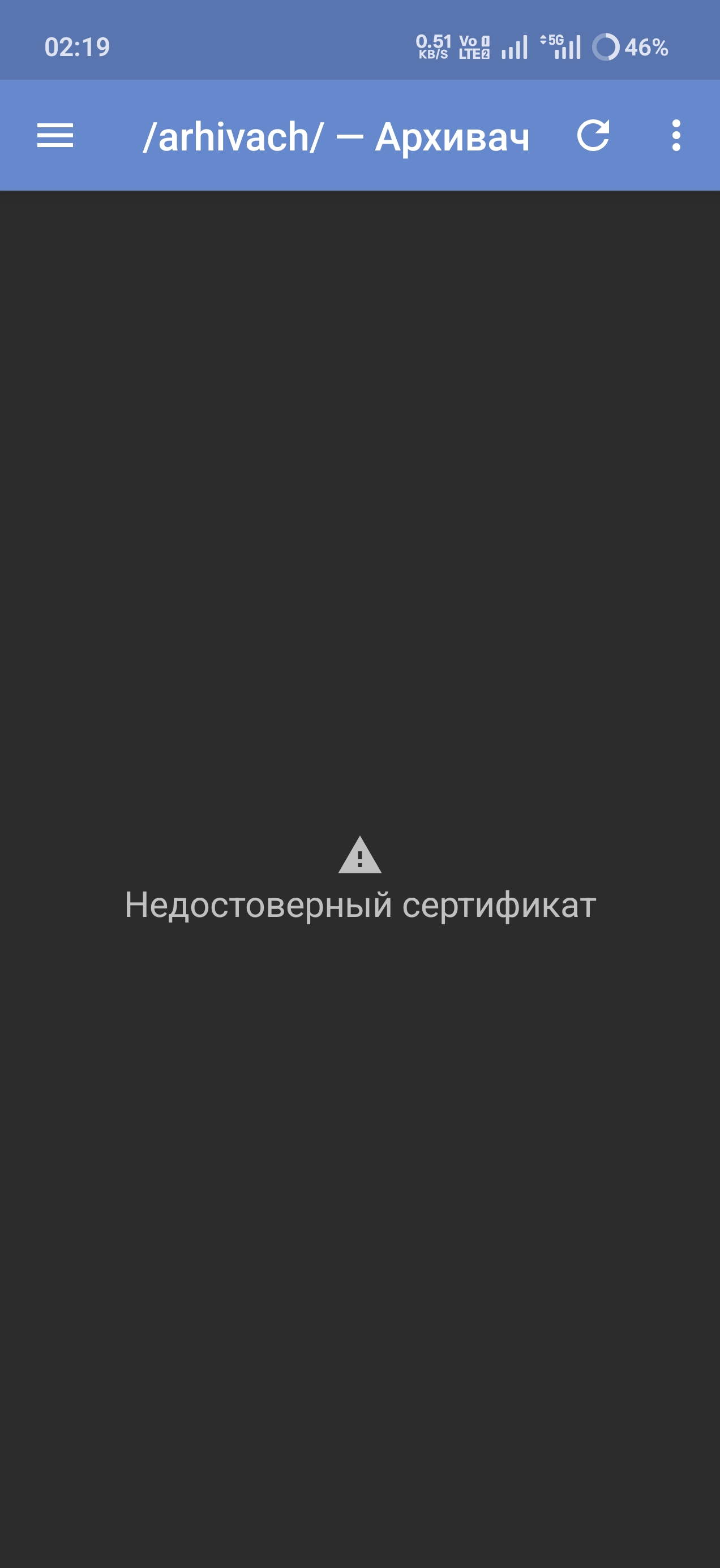 >>2632585 (OP) Внезапно отъебнул сосач. Перепробовал все домены — нихуя. Приложение 3.14 из шапки. Через браузер все грузит нормально. Интернет на вайфай и обратно тоже переключать. Что делать?
