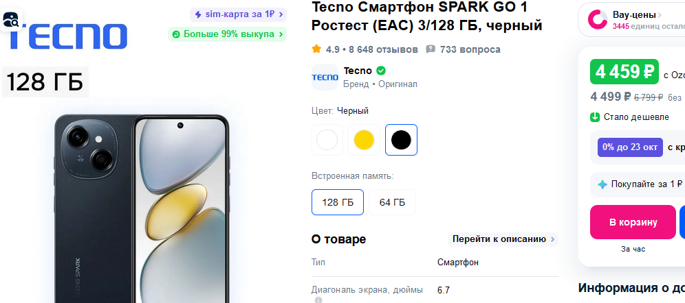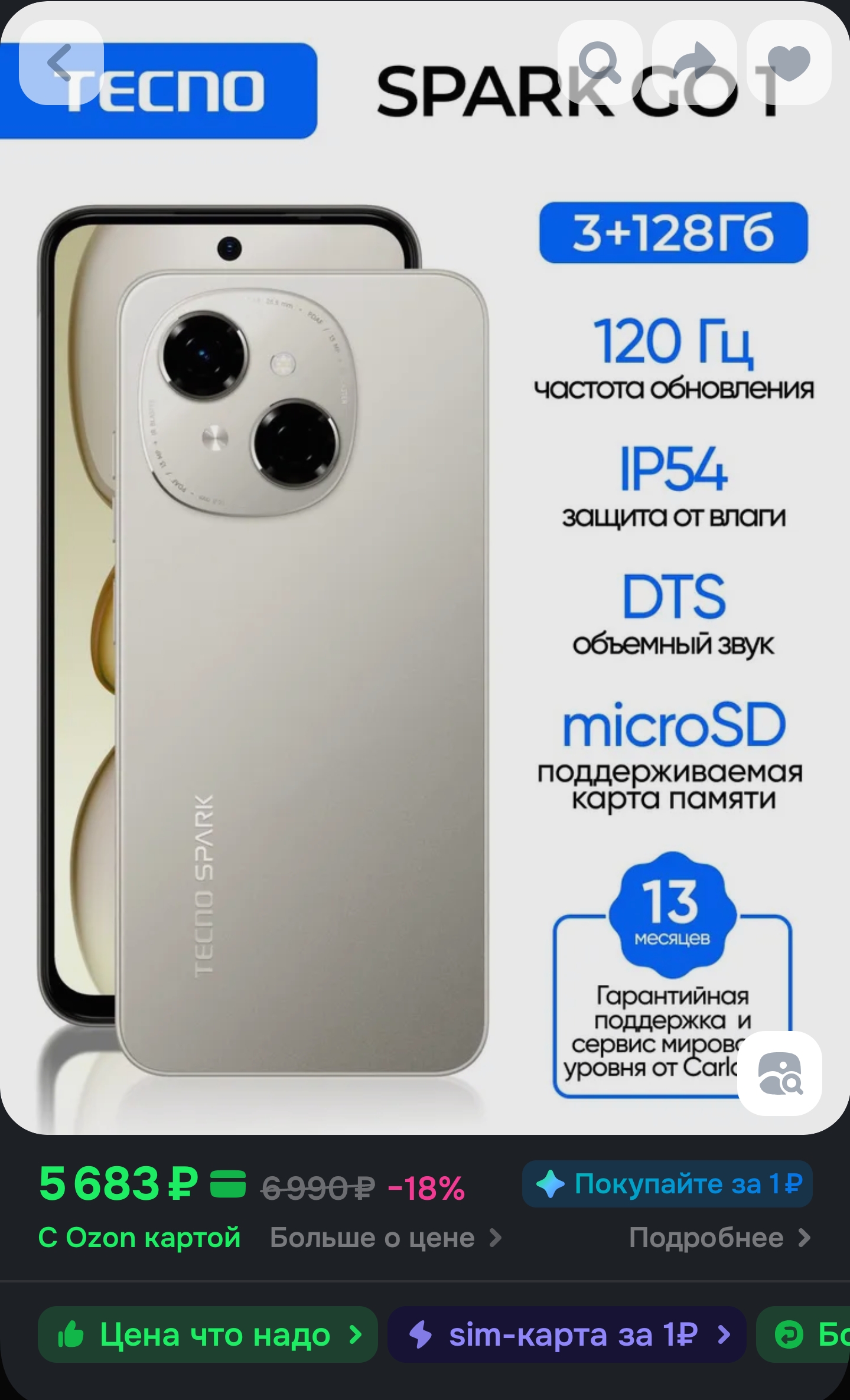 Смартфон до 3 500 тысячи рублей для родственника с двухзначным айкью У меня тоже двухзначное айкью, но я не настолько деградировал Можно чуть дороже SPARK Go 2 128+4GB Предлагал как вариант, но он дороже