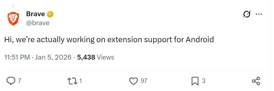 Brave на андроиде наконец-то начинает делать что-то реально полезное. Выкатили возможность добавления + для новой вкладки и остальных ярлычков. Потом сделали возможным убирать лишние элементы из менюшки. Пока что только в nightly версии, но скоро думаю через месяцок будет и в стабильной.