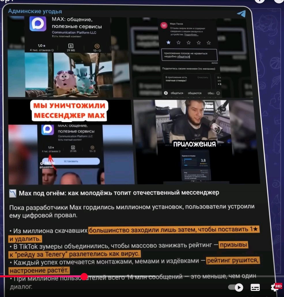 Кстати, MAX, это не государственный мессенджер, он принадлежит "ООО Коммуникационная платформа". Те есть, граждане отдают свои личные данные коммерческой фирме. Великолепно.