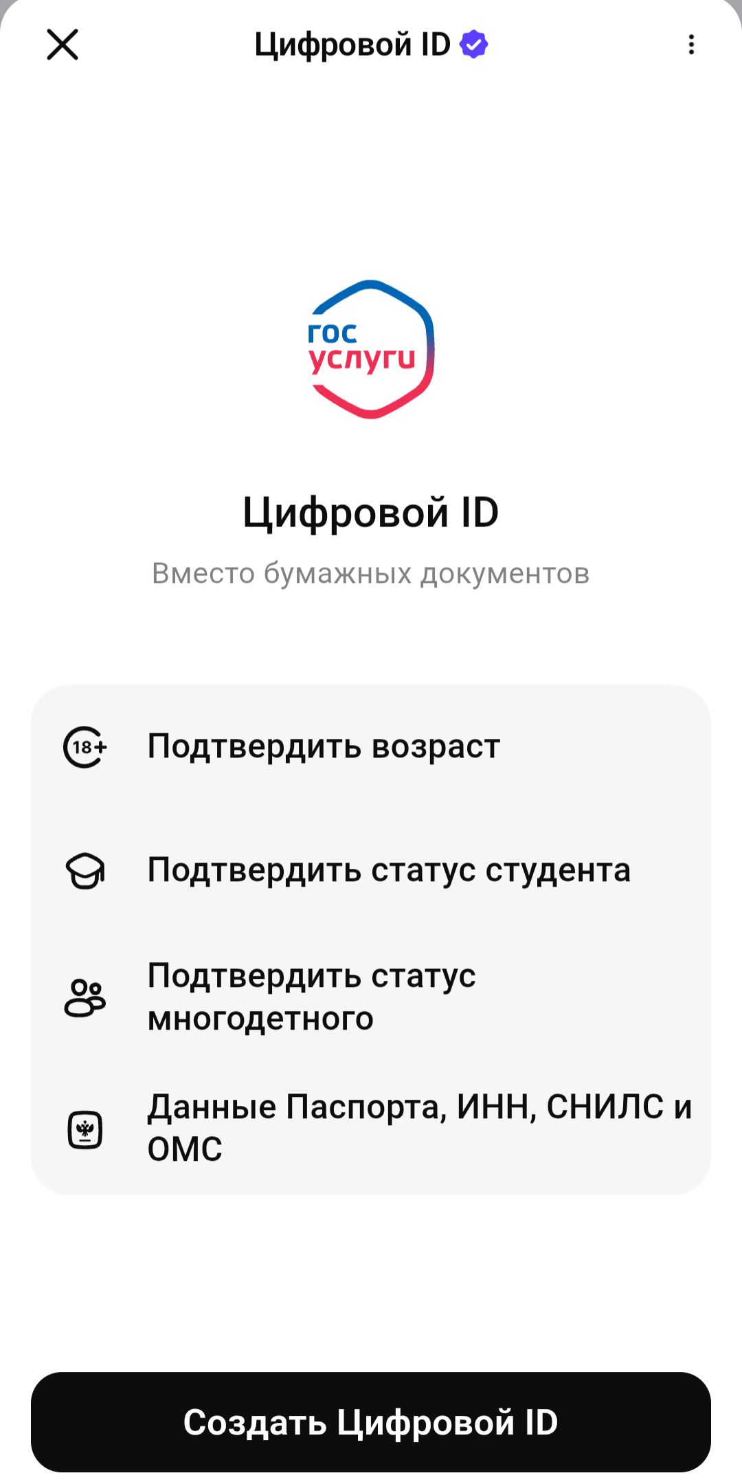 Сервис Цифровой ID позволит наравне с бумажными документами подтвердить: ▪️возраст ▪️статус студента ▪️статус многодетной семьи
