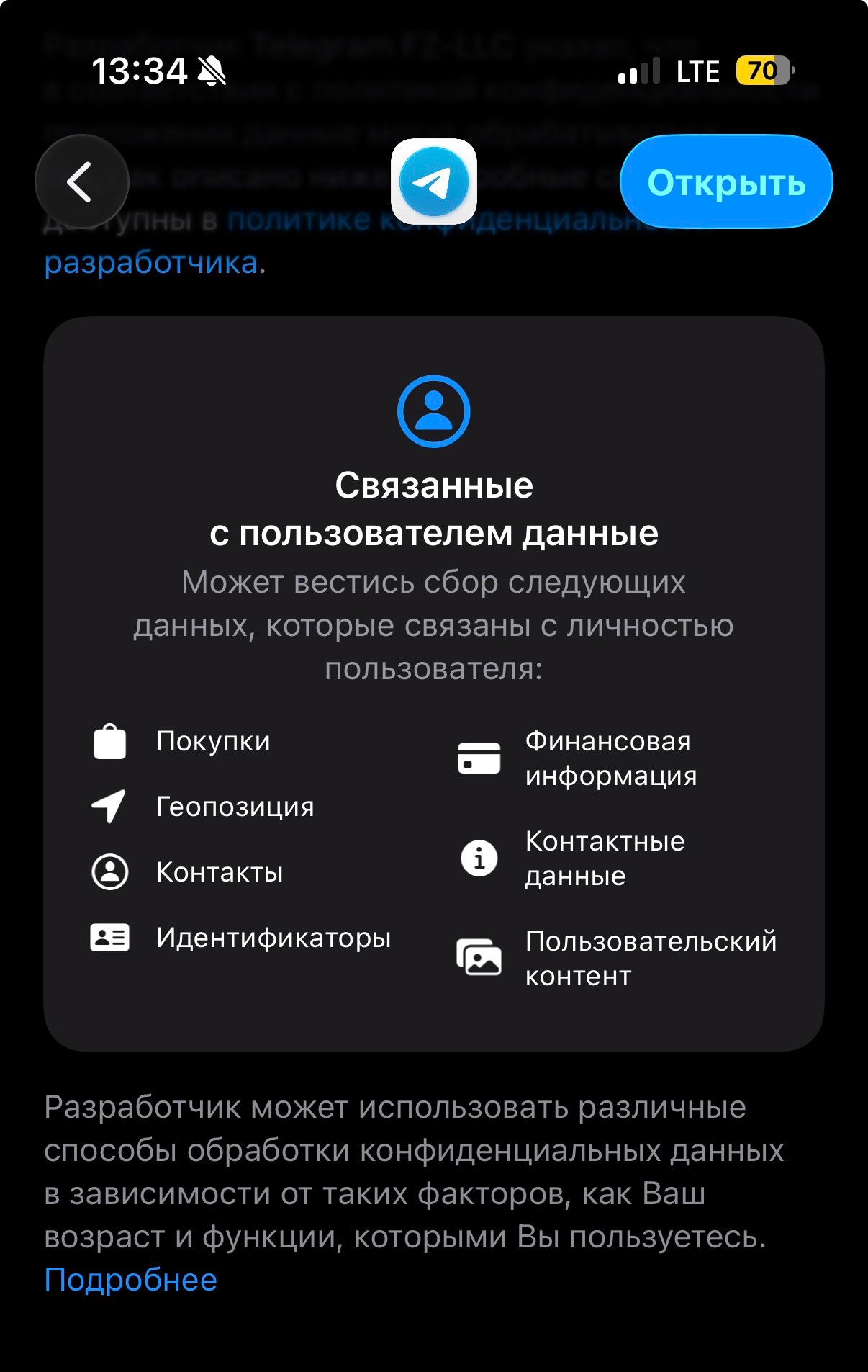 Доступ к личным данным. Мессенджер получает доступ к контактам, галерее, микрофону, камере и другим функциям. Это возможно только с вашего явного согласия.