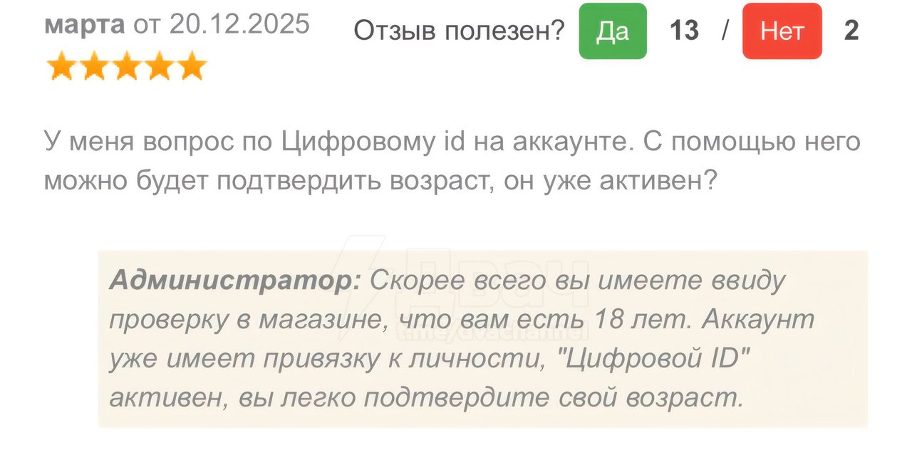 ❗️Цифровой ID, выпущенный по водительскому удостоверению, можно будет использовать только для подтверждения возраста — например, на кассах самообслуживания при покупке товаров 18+ в магазинах «Магнит», «Пятерочка», «Перекресток» и «ВкусВилл» в Москве, Санкт-Петербурге, Краснодаре и других городах России.