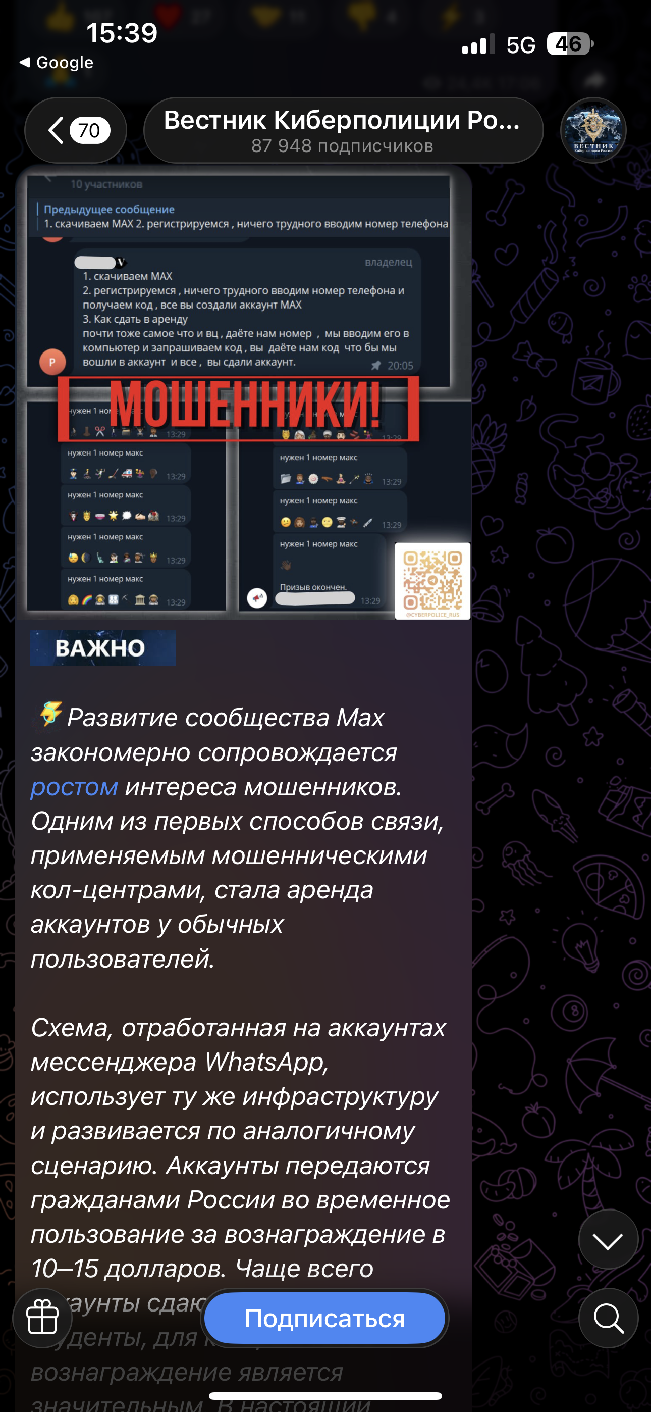 Сценарий таков: взламывают аккаунт доверенного участника чата и публикуют эмоциональное сообщение вроде «Позавчера в аварии разбились наши знакомые» с ссылкой на канал. Люди, перейдя по ссылке, видят файл с якобы фотографиями, но на самом деле это вредоносное приложение с трояном «Мамонт», который крадет платежные данные и перехватывает сообщения. Чем больше участников, тем выше шанс, что кто-то клюнет.