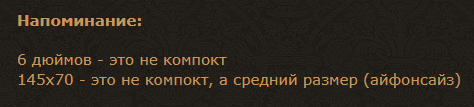 6 дюймов - это не компокт 145x70 - это не компокт, а средний размер (айфонсайз)