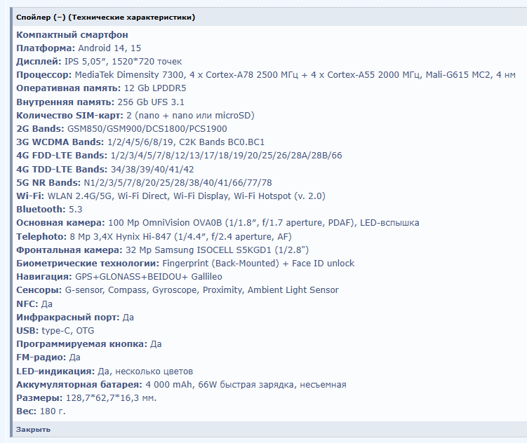 132x63.4x10.8 mm MediaTek Helio G99 6/8, 128/256 5.3" TFT 120 Hz 2900 mAh IP65, NFC, отпечаток в кнопке, слот MicroSD, миниджек Нет 7 и 20 бэндов LTE В Японии стоит ~18/20к рублей