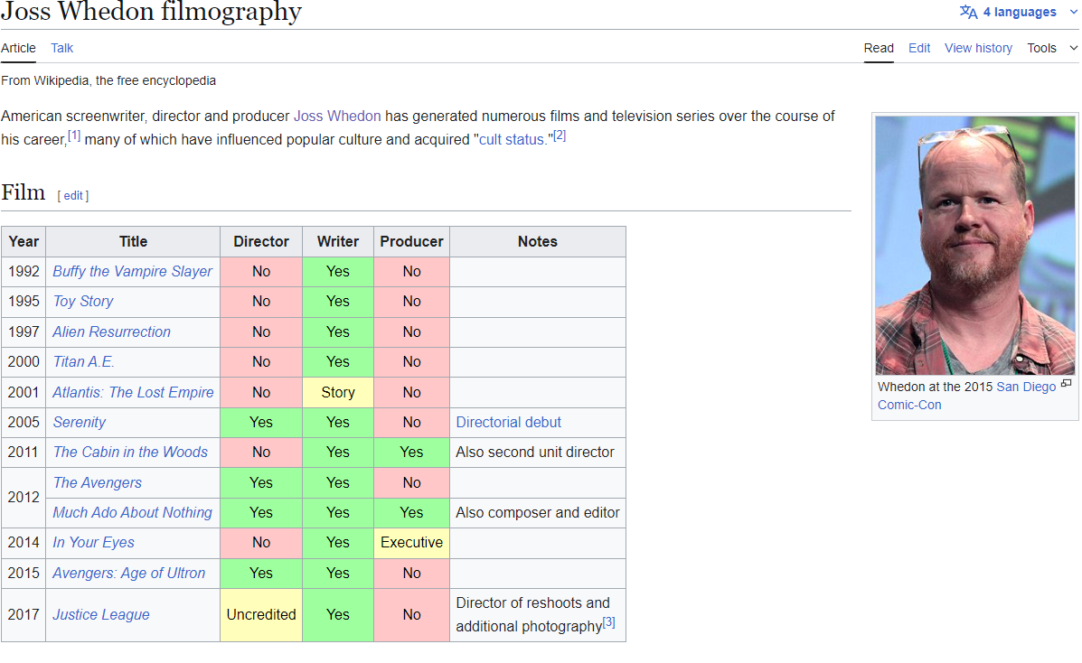 >>4097097 Так его же отменили вроде после лиги - все вспомнили что он якобы неэтично ведет себя с актерами на площадке. Ну вот он значился шоуранером сериала The Nevers (2021 — 2023). А также значится автором одной серии нового сериала по Баффи (хотя может просто его имя в кредитах). Получается отменили