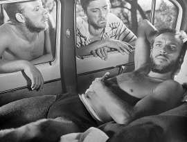 Помню из детства фильм, где несколько телок пиздят мужика по еблу кулаками (он отлетал от ударов от одной к следующей). Действие происходит на дороге. Они вроде как за что-то ему мстили