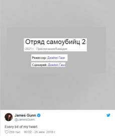 >>2243695https://twitter.com/JamesGunn/status/1011323717849210880/photo/1Сразу после выхода инфинити вора (ВБ и Эндгейм снимали одновременно, сценарий офк писали тоже одновременно)