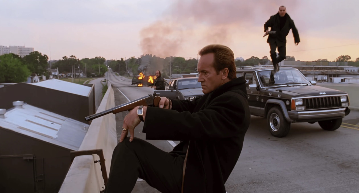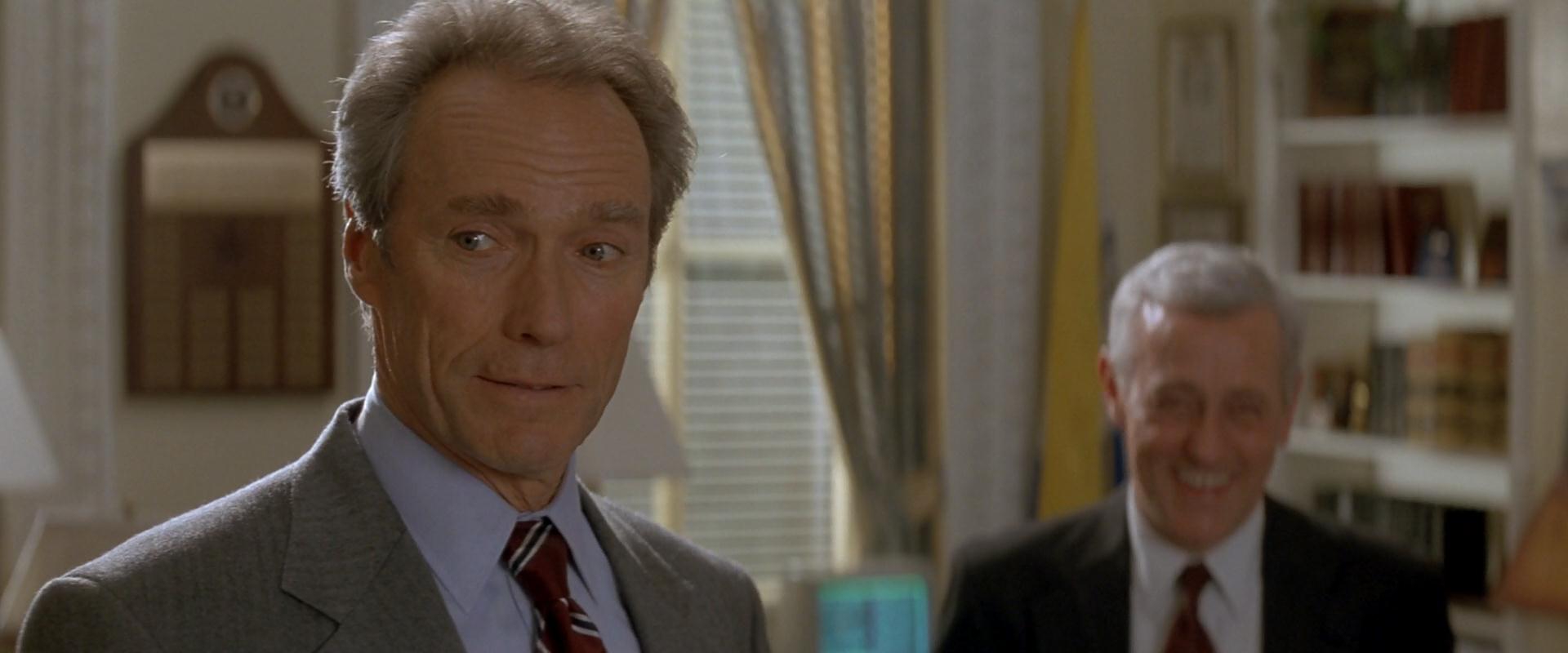 Фильм, для описания которого в аннотации всякий уважающий себя маркетолог должен непременно употребить слово остросюжетный, на самом деле довольно прост, и в этом его главная сила. Это классическая игра в кошки-мышки между маньяком и полицейским, только маньяк здесь бывший црушник, а коп – сотрудник секретной службы по охране президента США. Президент в опасности, и Клинт, который настолько супер стар, что ещё успел, как известно неудачно, потелохранитить Кеннеди, тут применит всю свою самоотверженность, чтобы первое лицо самого могущественного государства планеты могло спать спокойно. Сама работа службы тут неплохо показана, действуют тут ребята куда слаженнее и изящнее, чем недавно в эпизоде IRL с поцарапанным ухом. И президенты тогда были посолиднее, не то что полусонные деды и твиттерные пиздаболы.