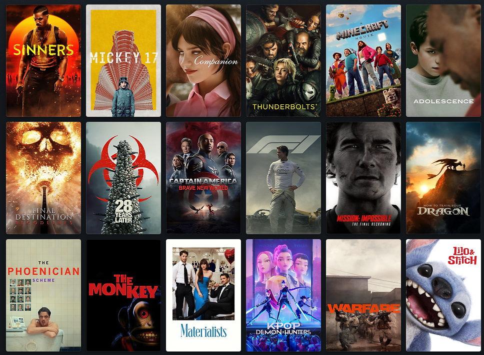 Я хуею самые популярные фильмы 25 года. Какие-то блять рабы-вампиры, корейская срань, пук назначения, пук назначения:обезьяна, очередная баба-робот, опять соевая параша от андерсена, только что была точно такая же, он походу нейронку обучил, эту хуйню бессодержательную клепать. Гоночки по кругу, Том круз бежит опять. Чё смотреть то ёб твою мать.