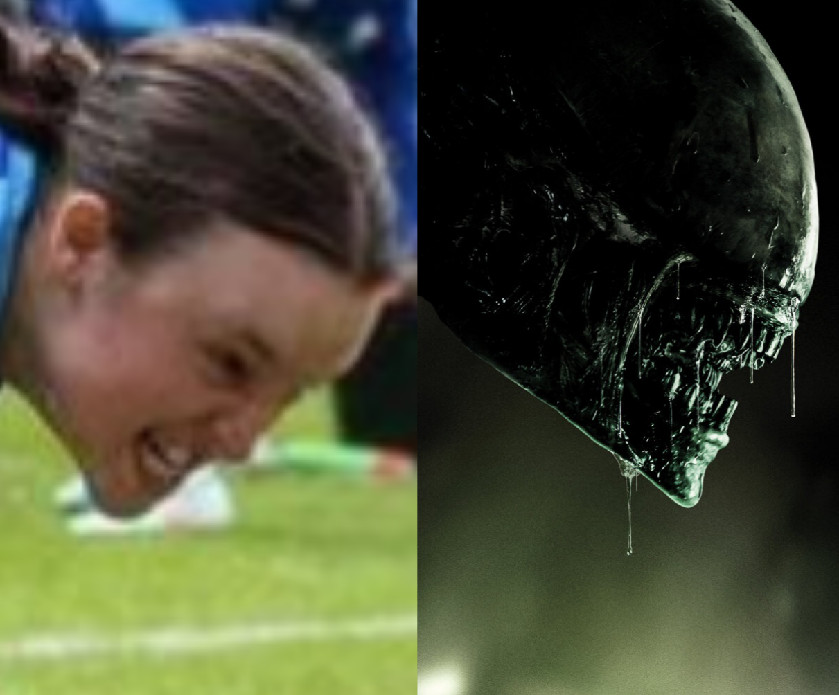 Хуй с ними, сиськами-висююльками, хуй юы с пузатой фигурой и нелепой башкой, но какая же у неё кривая, ассимметричная и рпросто непривлекательная мимика, буэ...