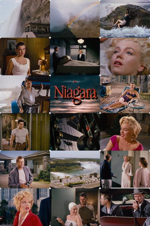редкий представитель нуара, снятый в цвете, еще и в антураже ниагарского водопада, вместо традиционных ночных каменных джунглей монро образ фем-фаталь-коварной суки подходит больше комедийных ролей, тогдашние режиссеры упустили ее потенциал в этом амплуа посмотреть в цвете на мир 1953 года - отдельное удовольствие