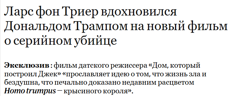 >>3995120 Буквально все фильмы этого шизика основаны на его личном опыте и травмах. По типу - "В детстве я увидел дохлую крысу в подворотне и очень испугался, поэтому бомжиха в МД это отсылка на неё. А вы че не поняли это? Ну и дураки."