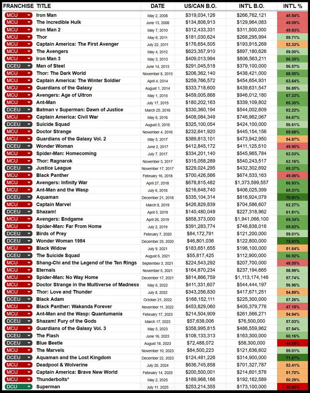 Есть ли какие-либо признаки того, что международный рынок активизируется и сократит разрыв в ближайшие недели? Или мы думаем, что начало DCU будет одним из худших по международным показателям фильмов по комиксам в современной истории?