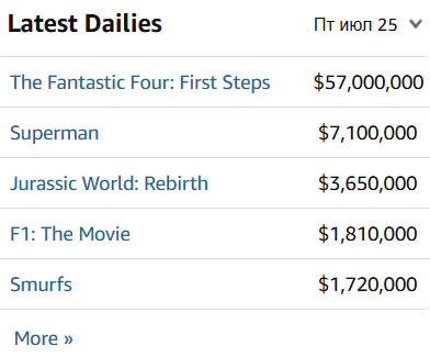 Честно сказать, я удивлён такой слабой кассе. Мне фильм очень понравился и я ожидал хотя бы около 900мл сборов, а тут ужасный Юрский период хорошую кассу взял и полностью слитый сюжет с семьей Лило и Стич собрал миллиард. Даже усталость от Супергероики не должна была так повлияет на кассу, потому что фильм буквально все советуют. Жаль.