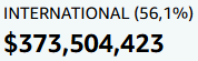 На долю США приходится $301,5 млн долларов, в то время как производственный бюджет составил $180 млн. По итогам проката фильму прогнозируют $800-830 млн в зависимости от успеха на территории Японии.