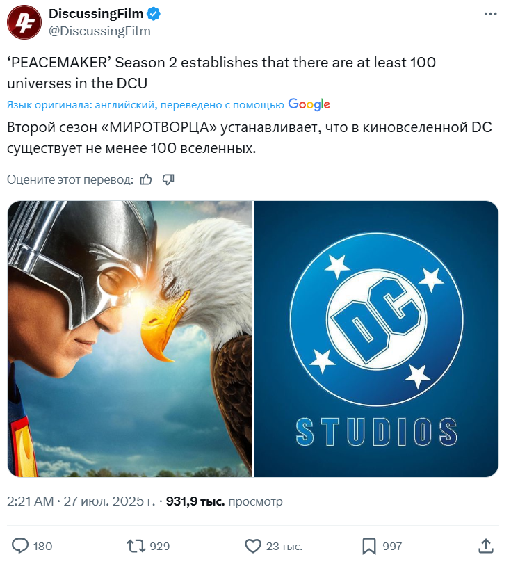 Я ещё с натяжкой могу понять, почему новому супсу желают провала фанатичные снайдерфаны, но почему этого хотят «фанаты диси», любители гик культуры, и просто ценители кинокомиксов понять не могу. Снайдерверс мертв, его тупо не вернуть, было много возмоможнлстей спасти эту вселенную, но ворнеры все проебали. И вот появился Ганн с горящими глазами, желающий перезапустить дисишную киновселенную, и тут же появляются много людей, желающих ему провала с этой амбициозной задачей. Просто подумайте, если провалится эта вселенная, то у диси, возможно, в обозримом будущем вообще не будет шанса построить нормальную связную киновселенную и в итоге стать конкурентами Марвел (а ведь без нормальной конкуренции эта индустрия реально рано или поздно загнется, марвел уже вывозит лишь одном на фансервисе и старичках). И стоит ли говорить, что подобный исход будет невыгоден буквально никому? Вам не обязательно должен нравится новый супермен, но одно дело, когда просто фильм не зашел, а другое, когда самого Ганна и всю его ещё не вышедшую вселенную о новом супсе уже похоронить желают. Бля, сцена с мартышками все же гениальна.