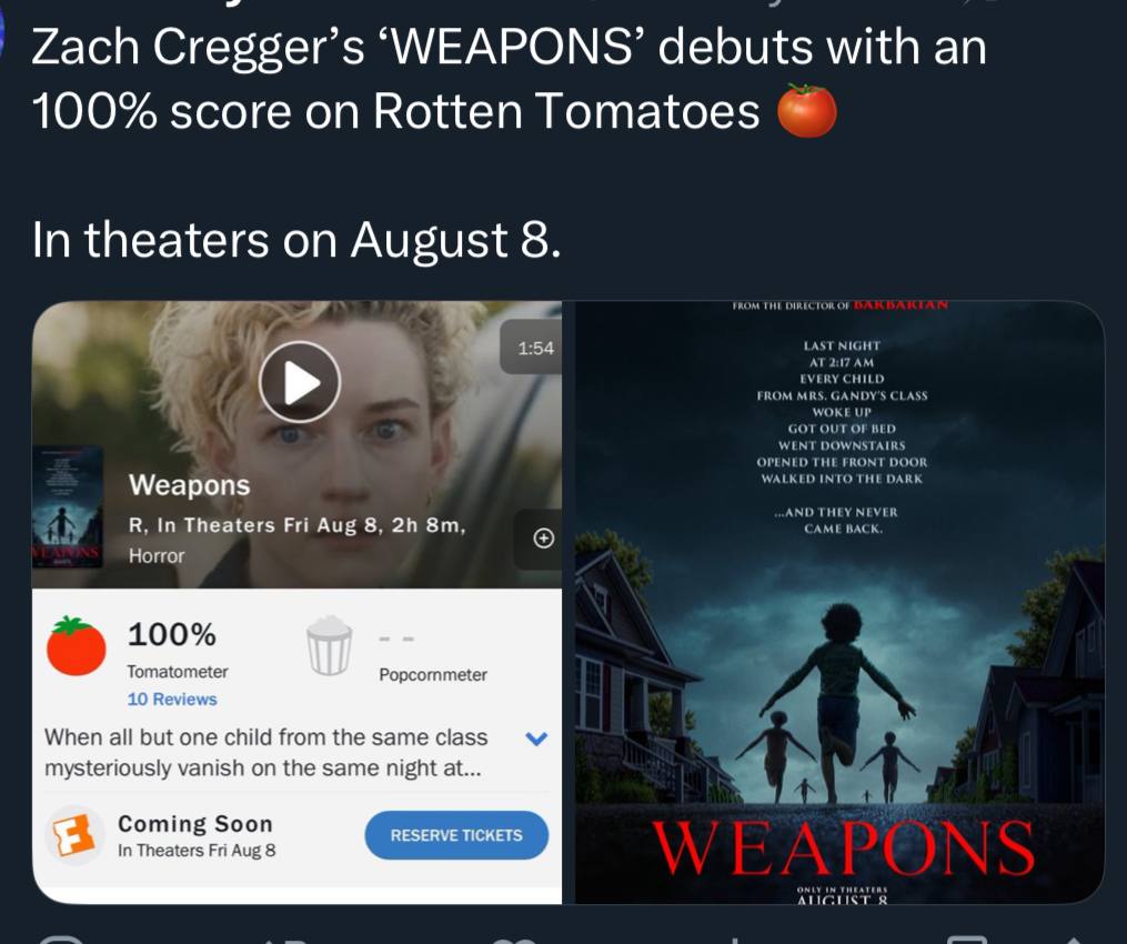 Открой телегу двача, там все засрано этими новостями о скоромы выходе этих фильмов. Там и про 100% свежести и про отзывы критиков..