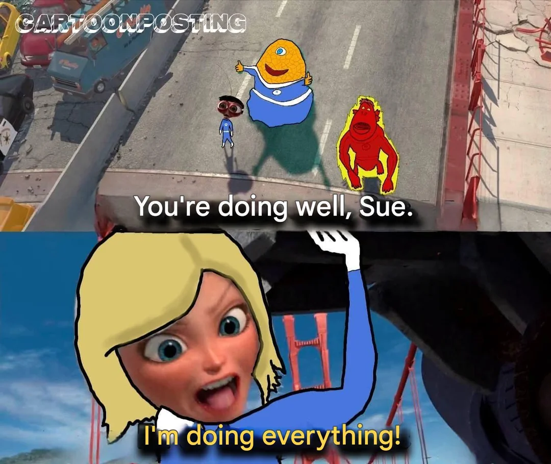 Блядь, кроме человека щитшторма и сьюхи в команде одни каличи блядь, громила может разве что гопников пиздить да машины тягать, а человек-гандон он просо нихуя не может.