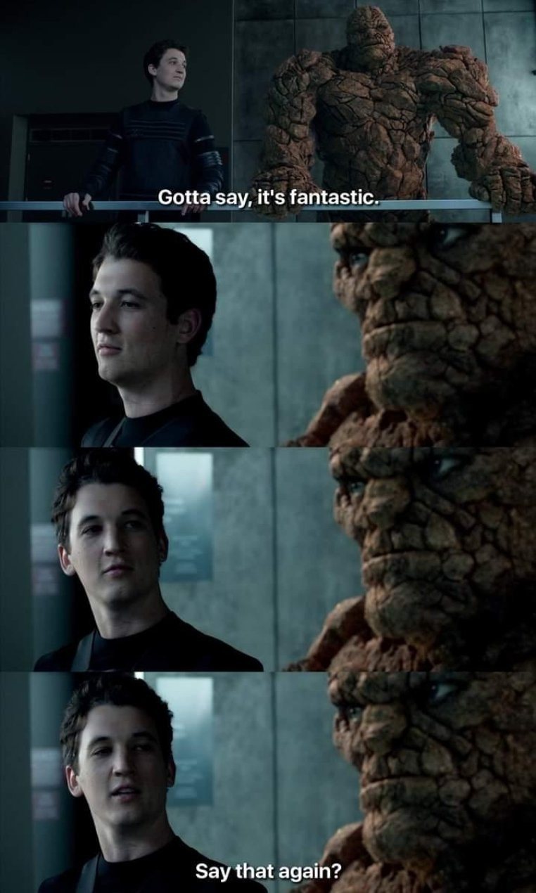 >>4002344 Как обычно все беды в этих фильмов от ёба-злодеев с суперспособностями, с которыми никто не знает что делать, в первую очередь сценаристы. Я знаю что у Фантастической Четвёрки есть ещё как минимум 1 злодей - какой-то там Мистер Крот. И за миллион фильмов про него нихуя даже не упомянули. Не говоря уже о том, что они живут в том же нью йорке что и челопук и теоритически могли бы с его злодеями порамсить. А то ДОКТОР ДУМ, Галактус - Галактус, Доктор Дум.